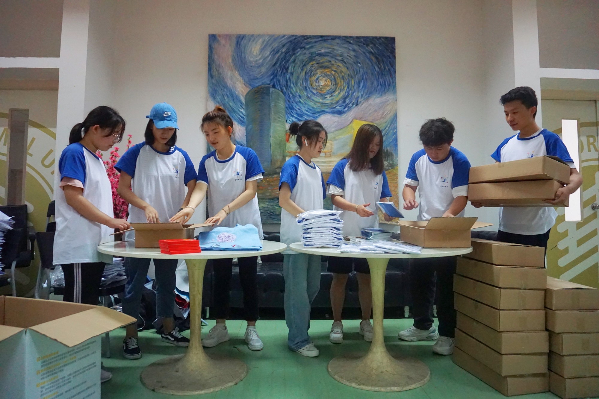 志愿者们为营员准备物资