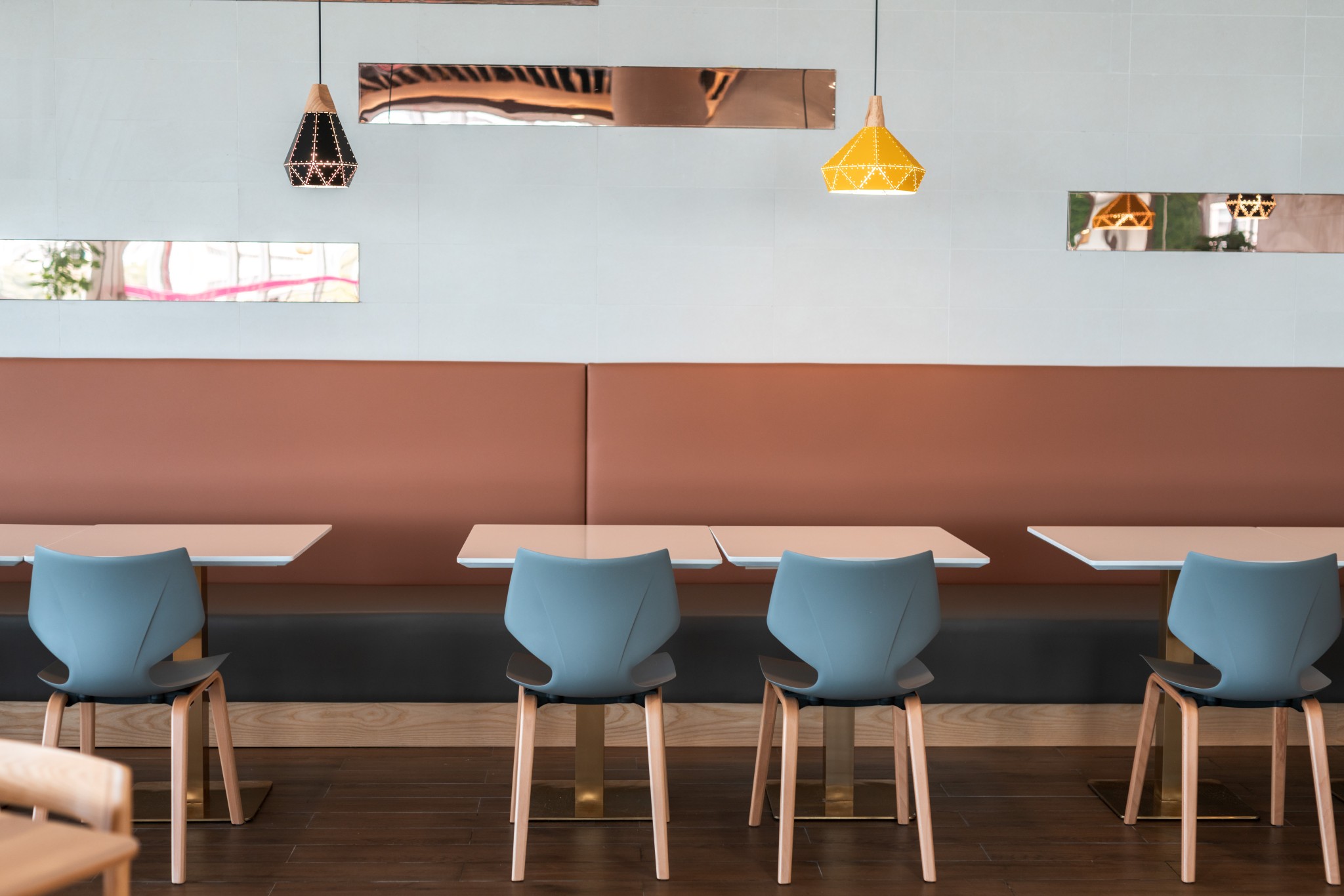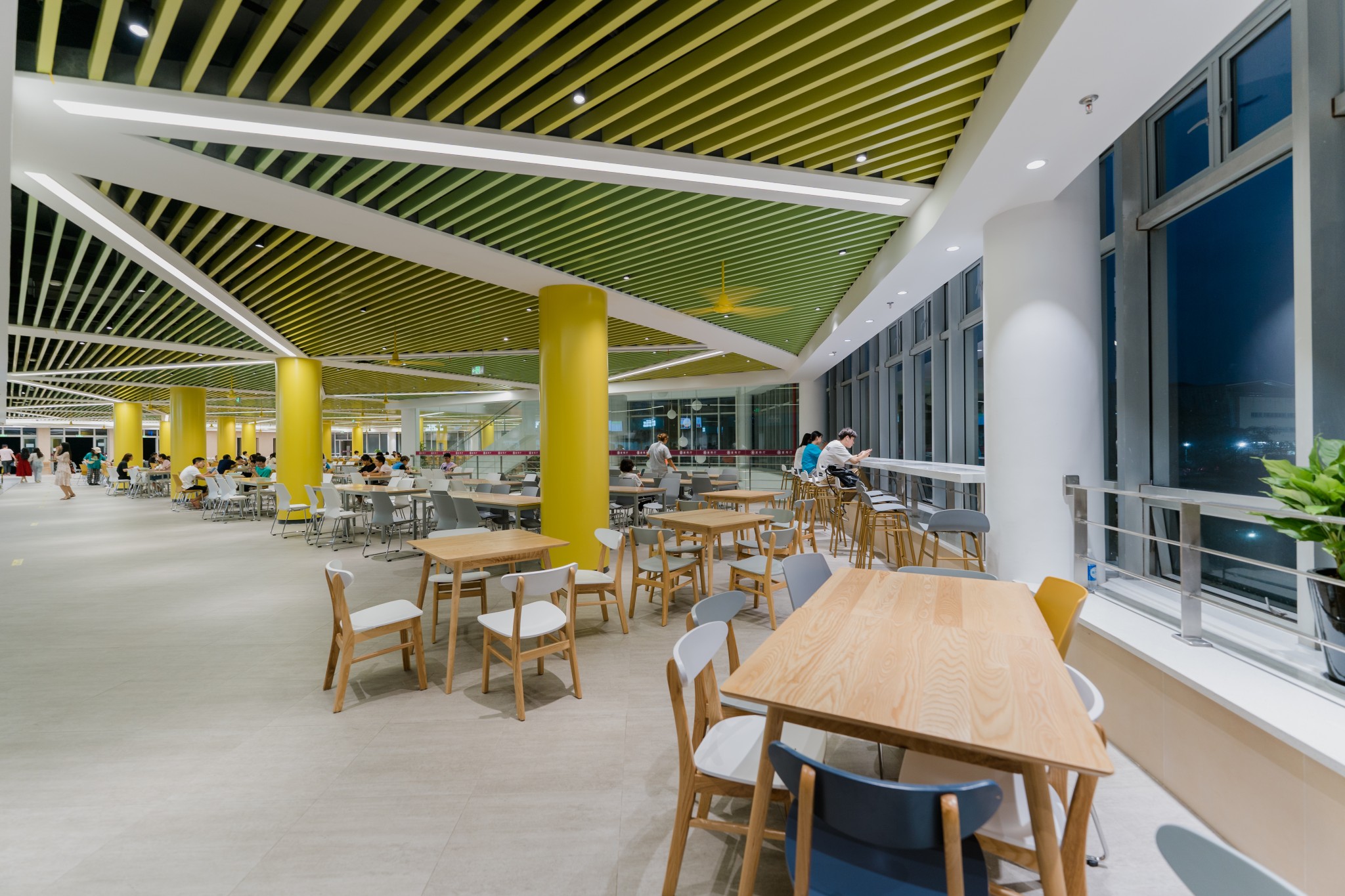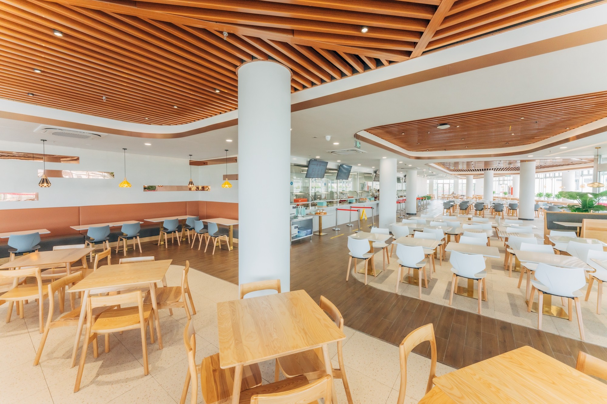 此次改造对原有结构不作改动,尽可能保留原有建筑元素。室内装修整体风格统一,以满足师生对就餐环境的需求,体现大学餐厅气质定位。木质桌椅与清新薄荷绿的餐具相得益彰。你喜欢吗?