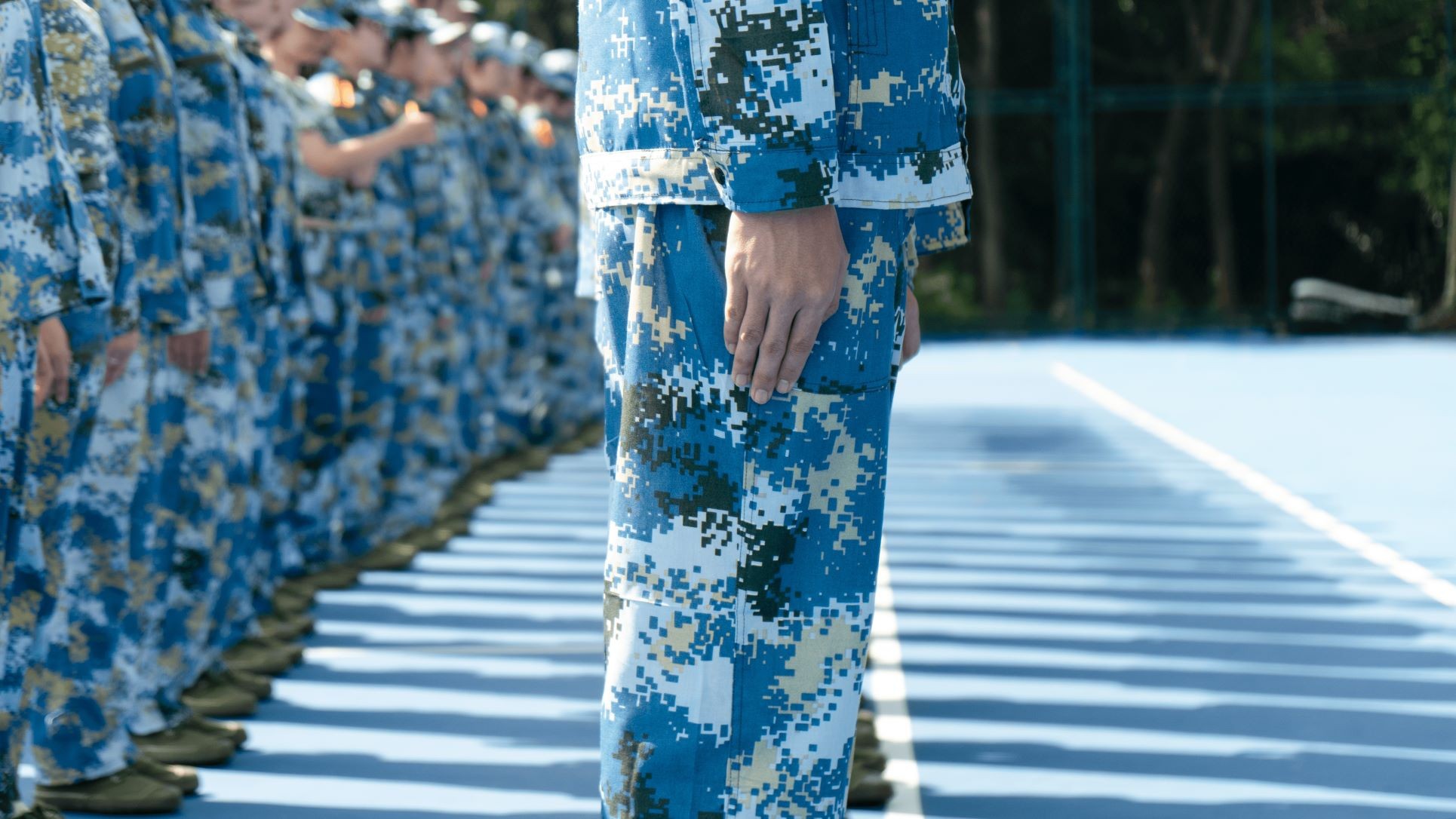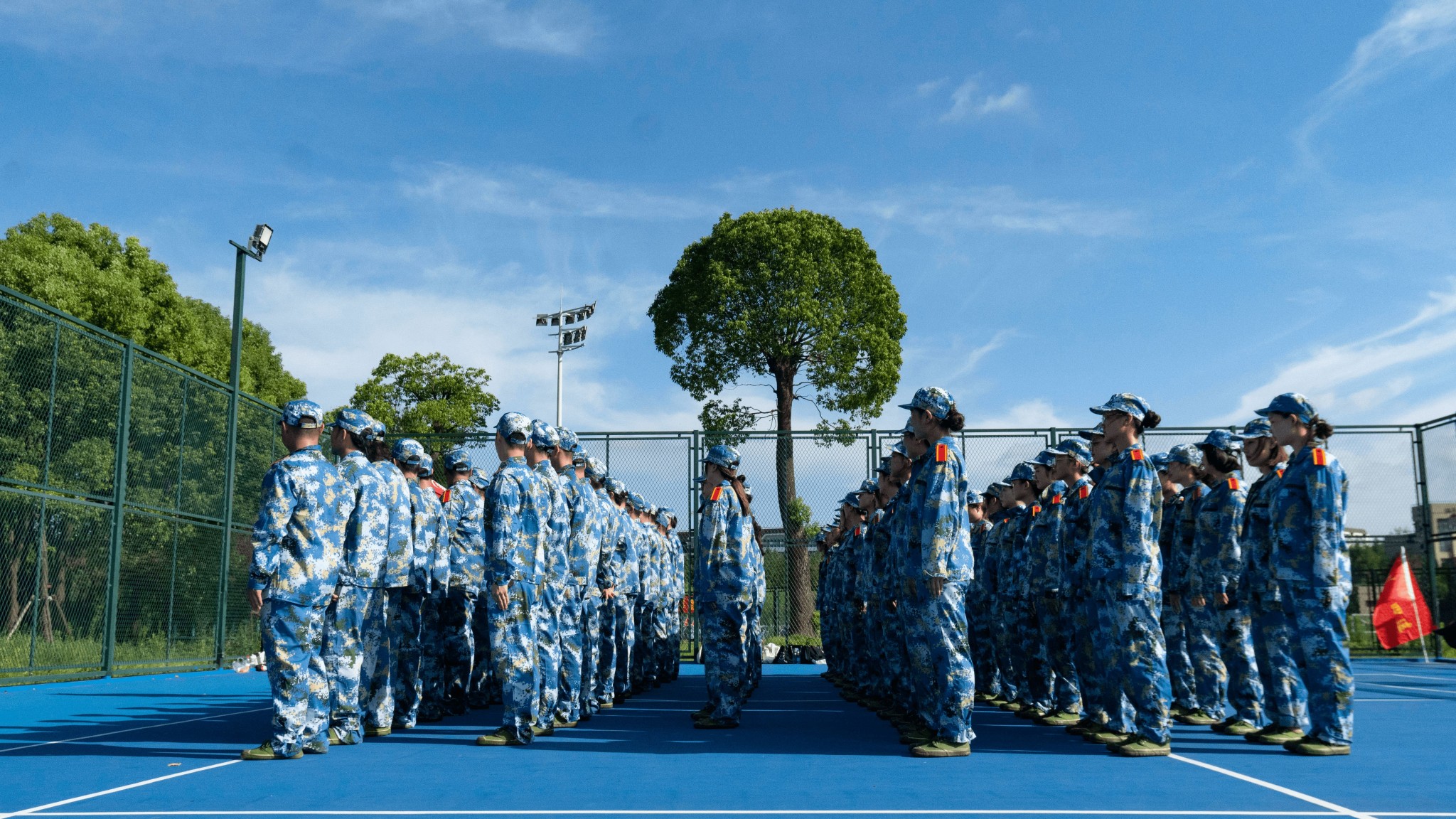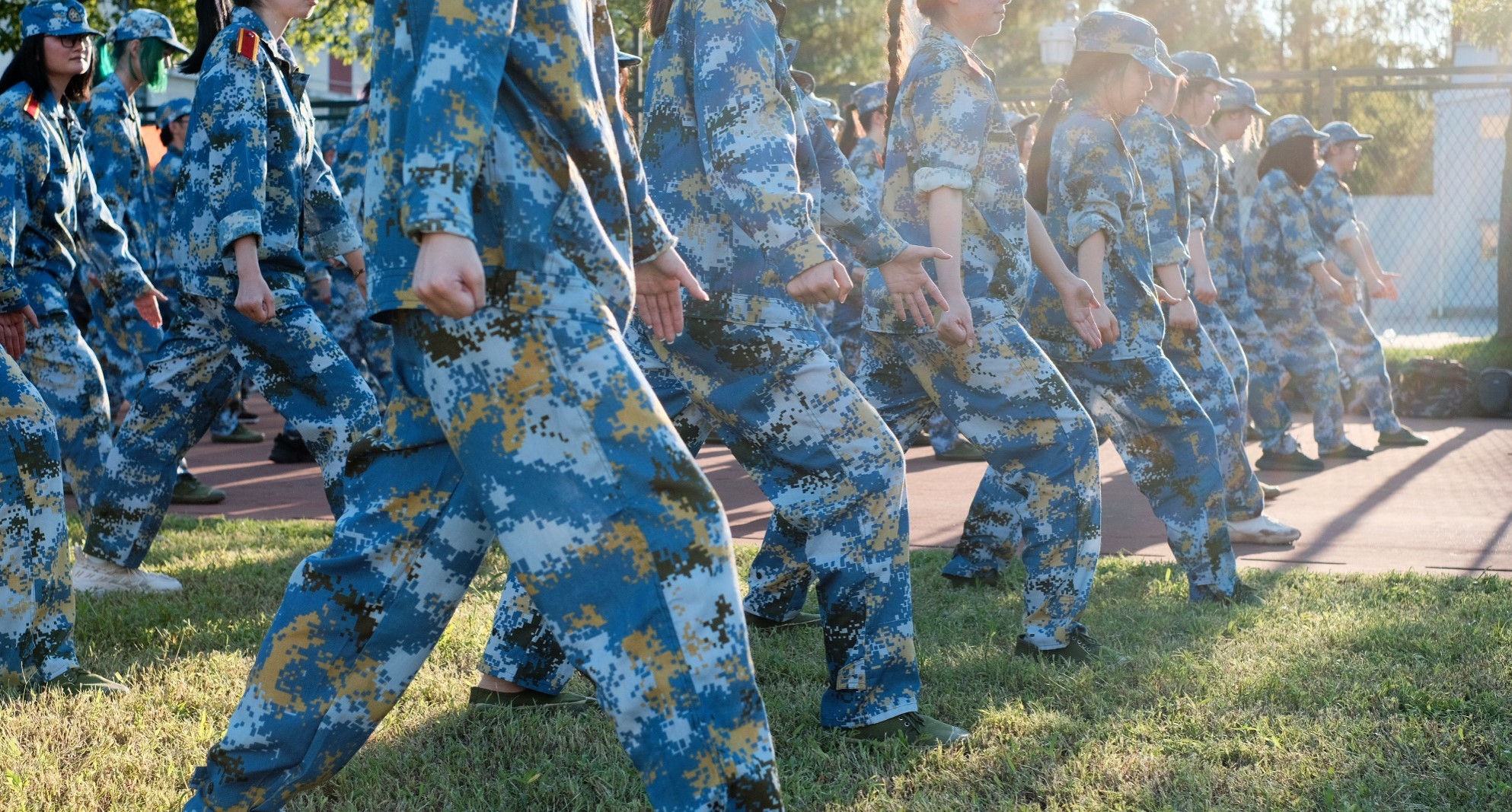 为期五天的线下实训正值“秋老虎”发威,尽管连日骄阳似火,但同学们身着蓝色迷彩军训服,在教官的带领下表现了良好的精神风貌。除了立正、齐步走、军体拳等日常训练,本次军训还融入了队列考核、定向越野等实训内容,形式更加丰富。