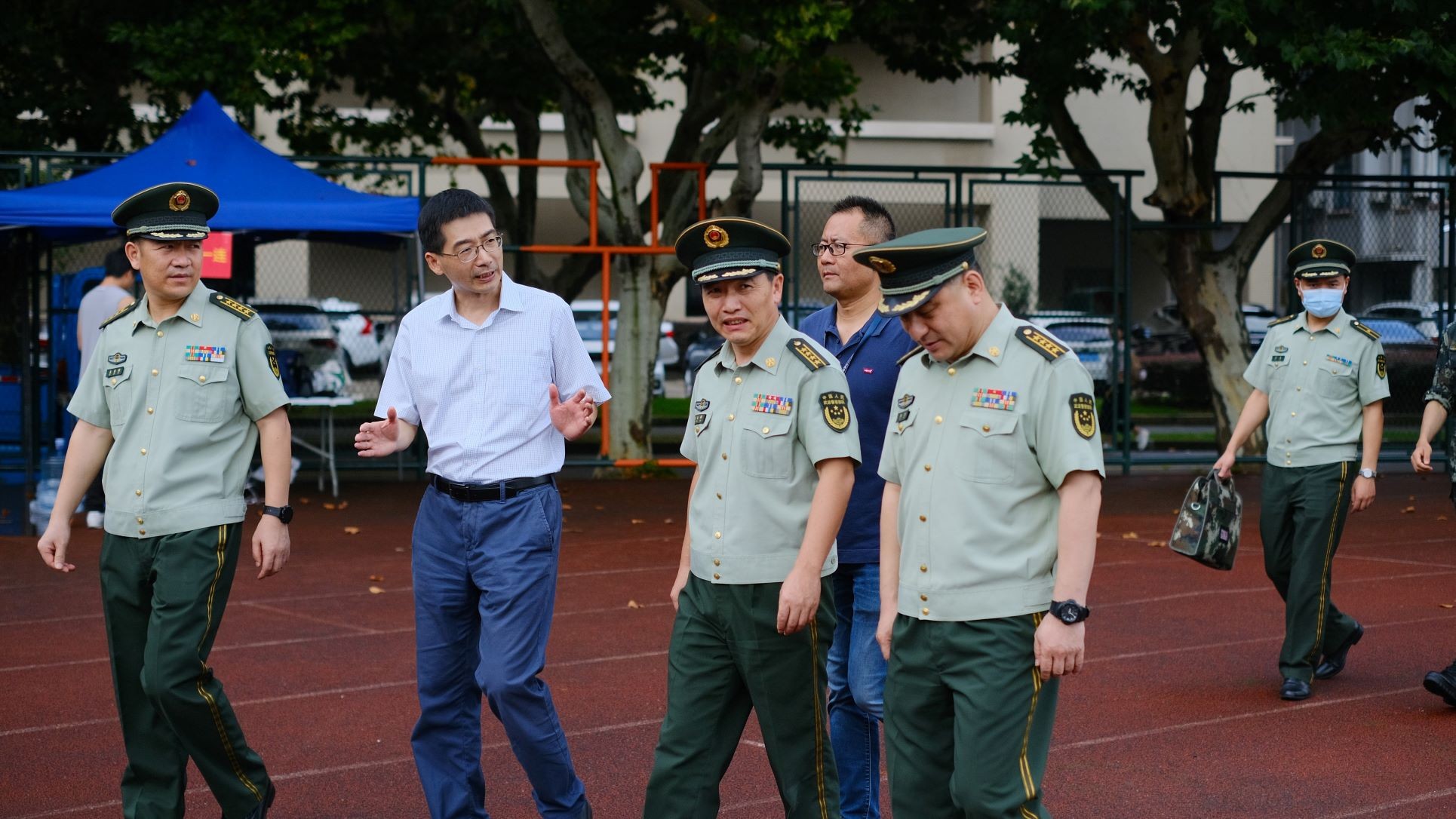 9月3日,万象城awcsport官网副校长顾红亮与承训部队领导座谈交流军训各项工作开展情况,并来到训练场地看望慰问正在军训的同学们。他向发挥了榜样示范作用的教官们表示衷心的感谢,指出军训是青年大学生的必修课,期待华东师大学子们能将身着迷彩时的精气神延续到今后的学习生活中,强健体魄、磨砺意志,恪守“强国有我”的青春誓言。