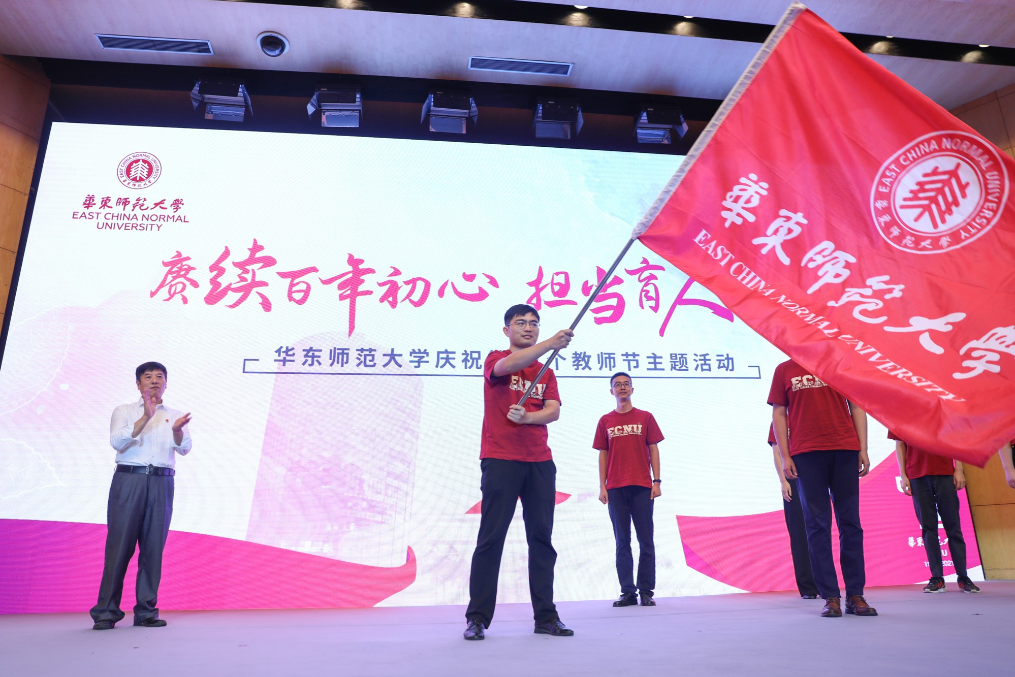 主题活动在新老教师的校旗传递中达到高潮。校旗的传递寓意着师大精神的传承,责任的传承,表达了对新入职教师的期待。