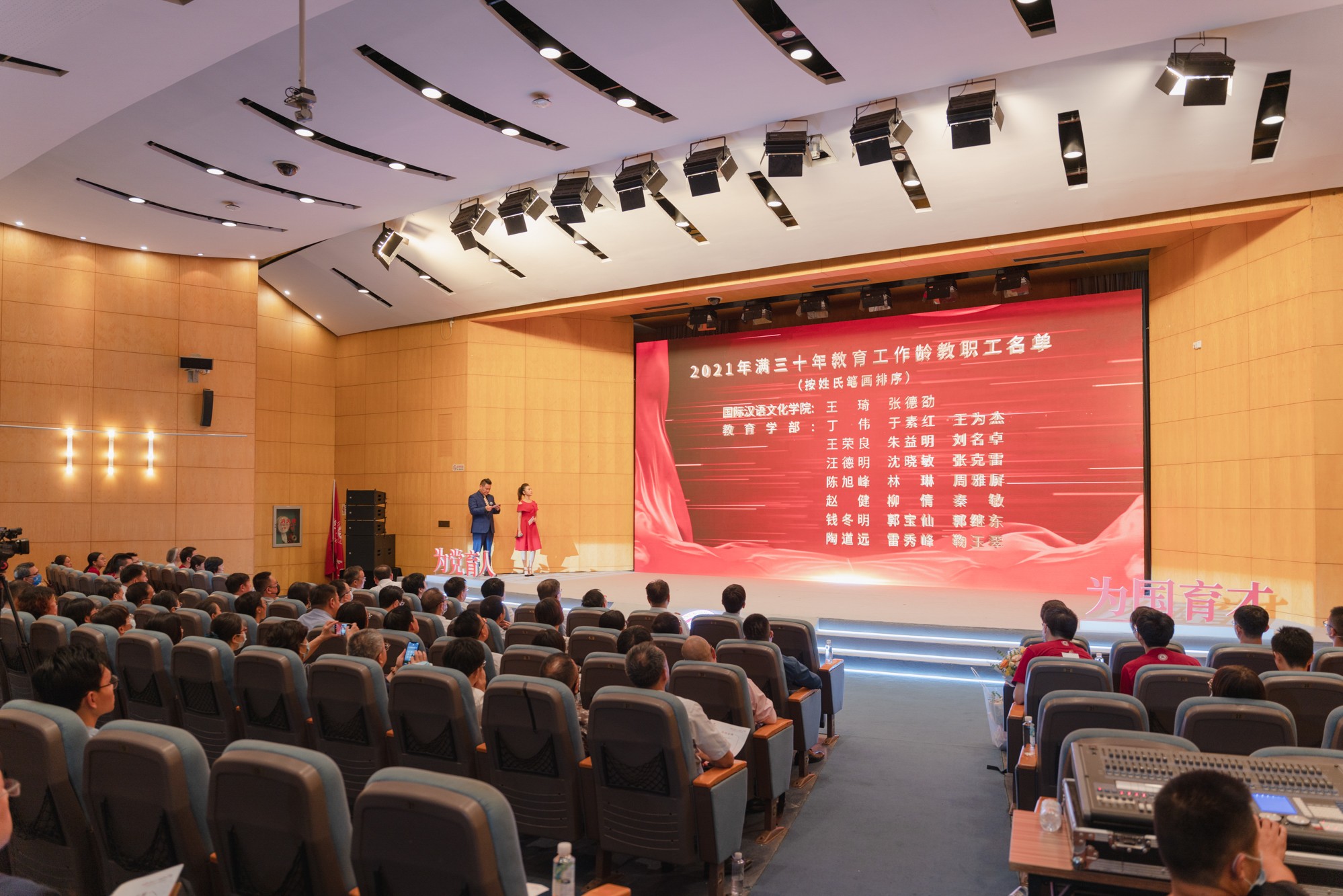 校领导,相关职能部门,学部、院系党组织负责人,部门工会主席,2021年度上海市育才奖获得者,满30年教育工作龄的教师代表,以及新入职的教职工、学生代表出席了本次活动。