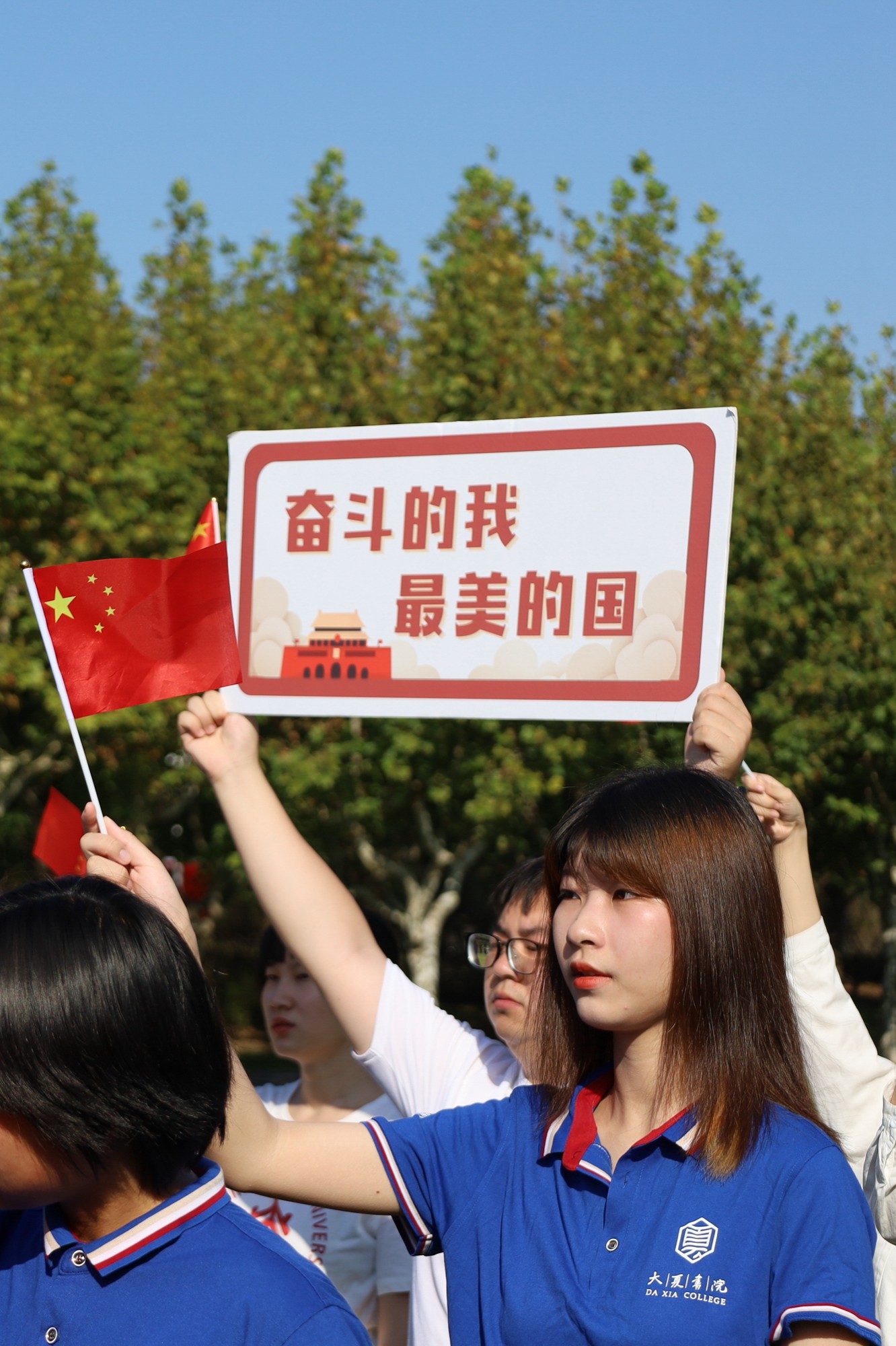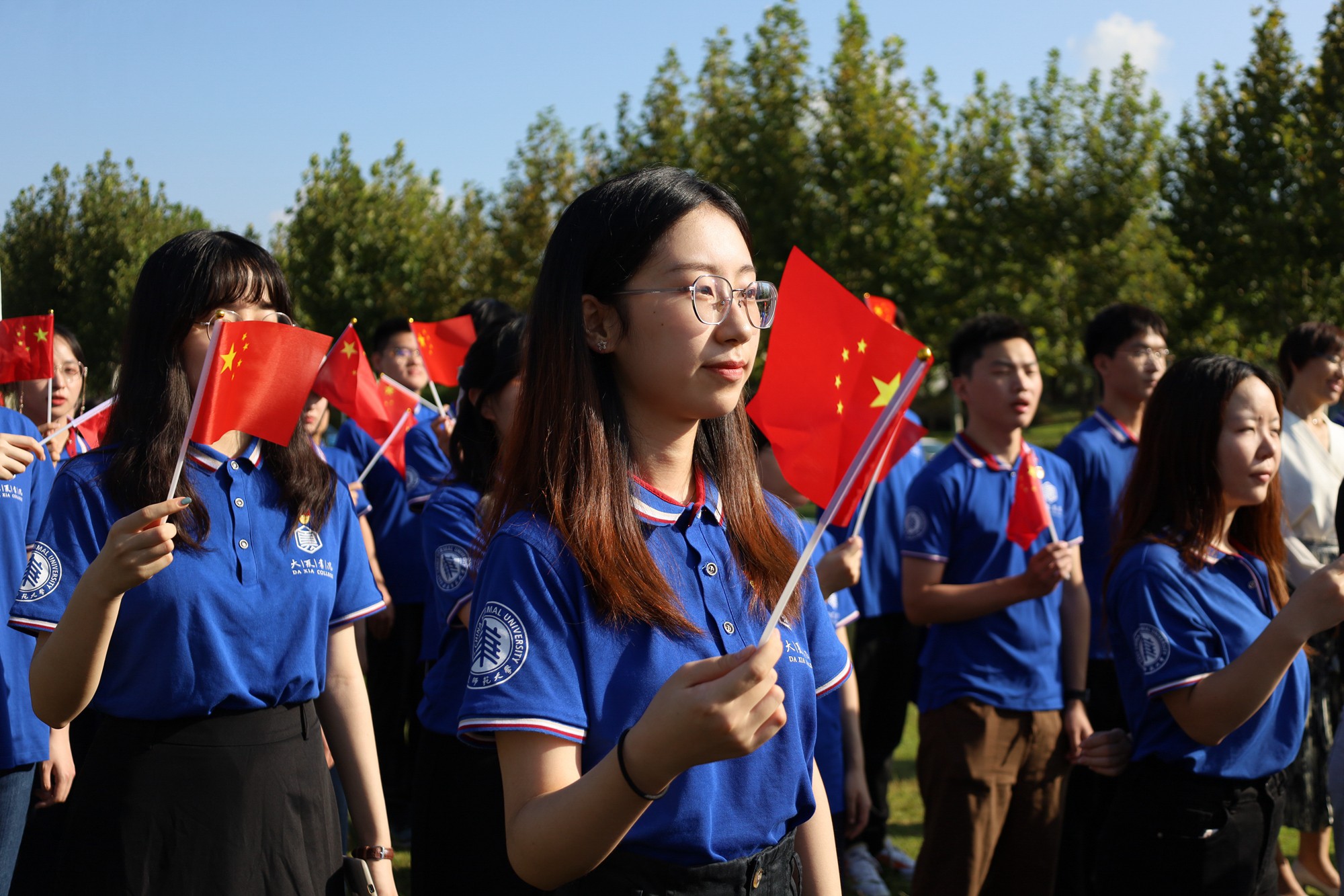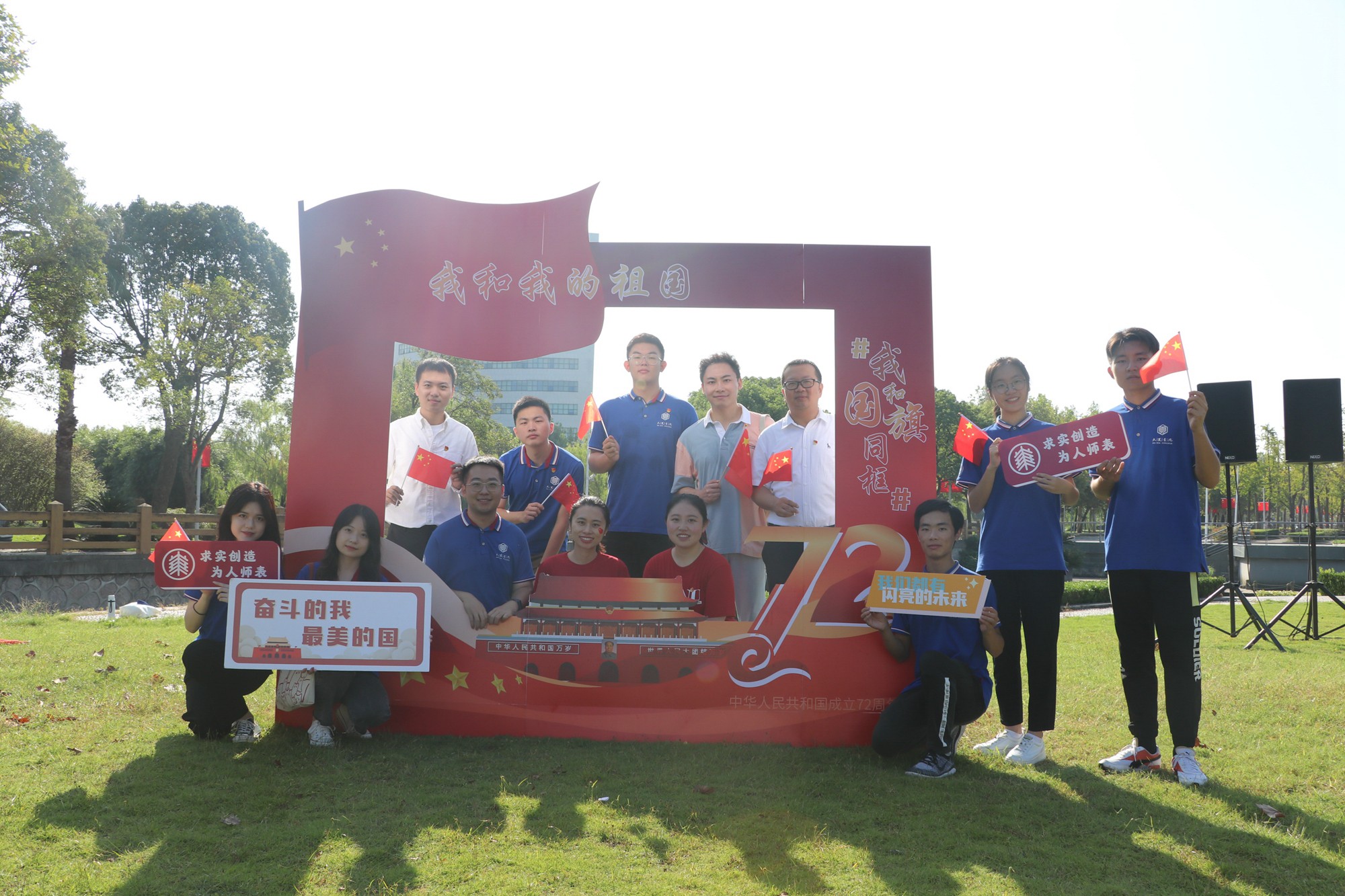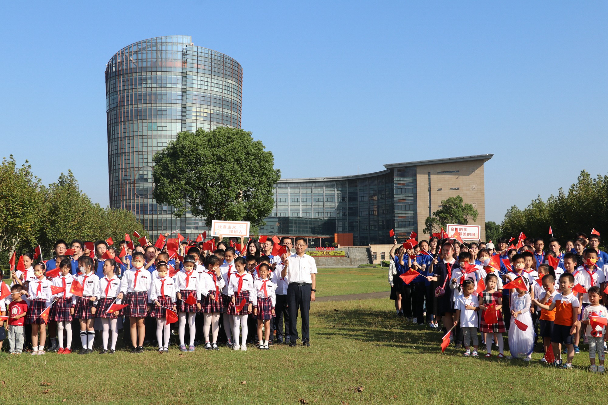 师生与国旗同框合影