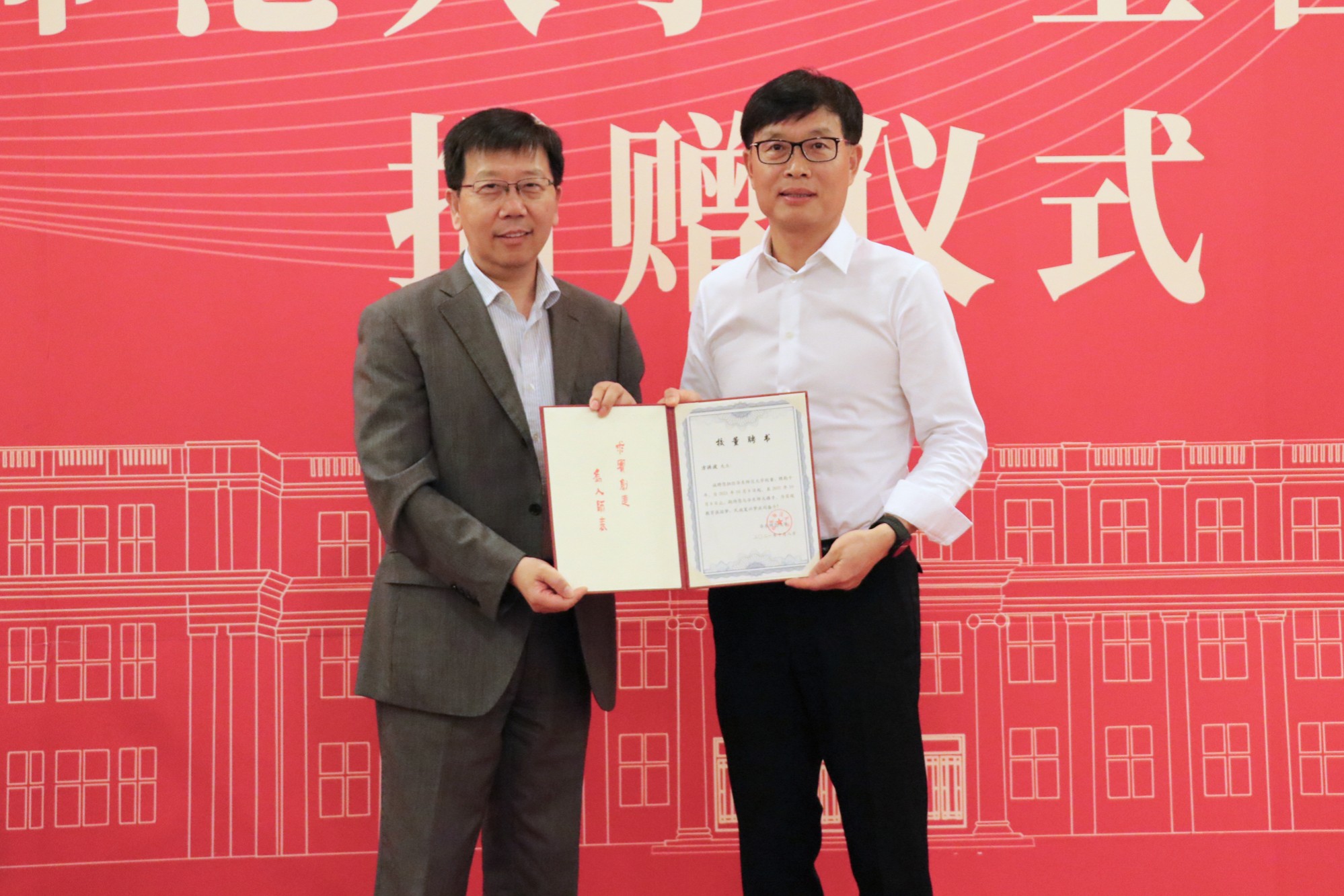 钱旭红校长为方洪波校友颁发校董荣誉证书