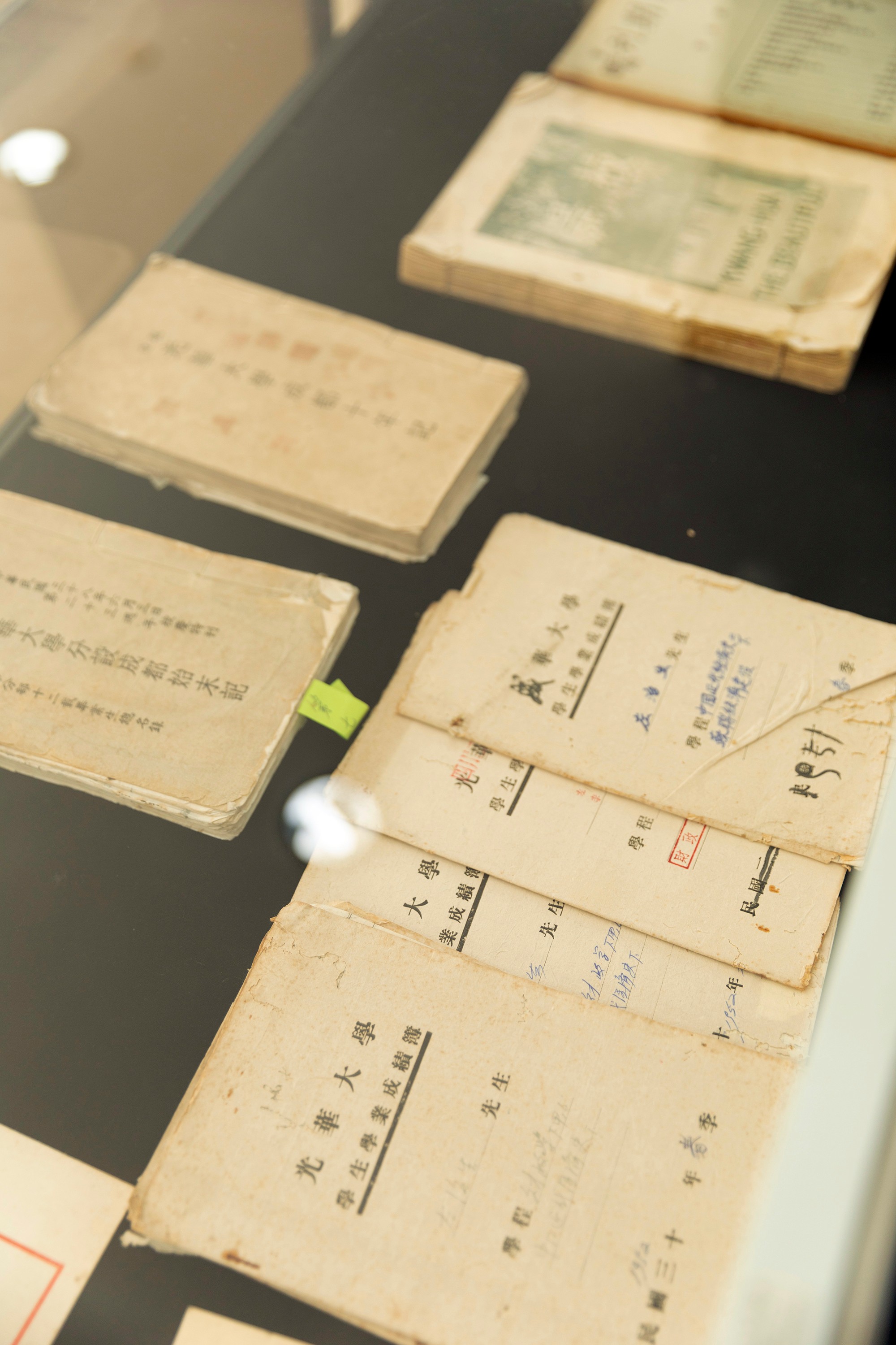 文献部分则以大夏大学、光华大学、圣约翰大学、万象城awcsport官网这四所大学为单元,分别展出与四所高校相关的各类图像、印鉴、文凭、证件、刊物等校史文献。