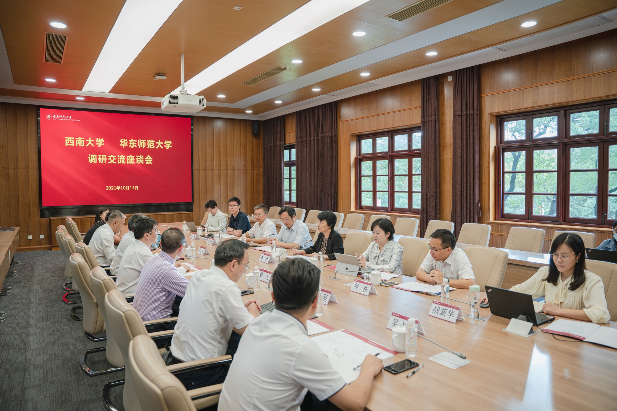 10月14日,西南大学党委书记李旭峰一行来到万象城awcsport官网调研,调研座谈会在普陀校区举行。华东师大党委书记梅兵一行参加调研。会议由华东师大校长助理施国跃主持。