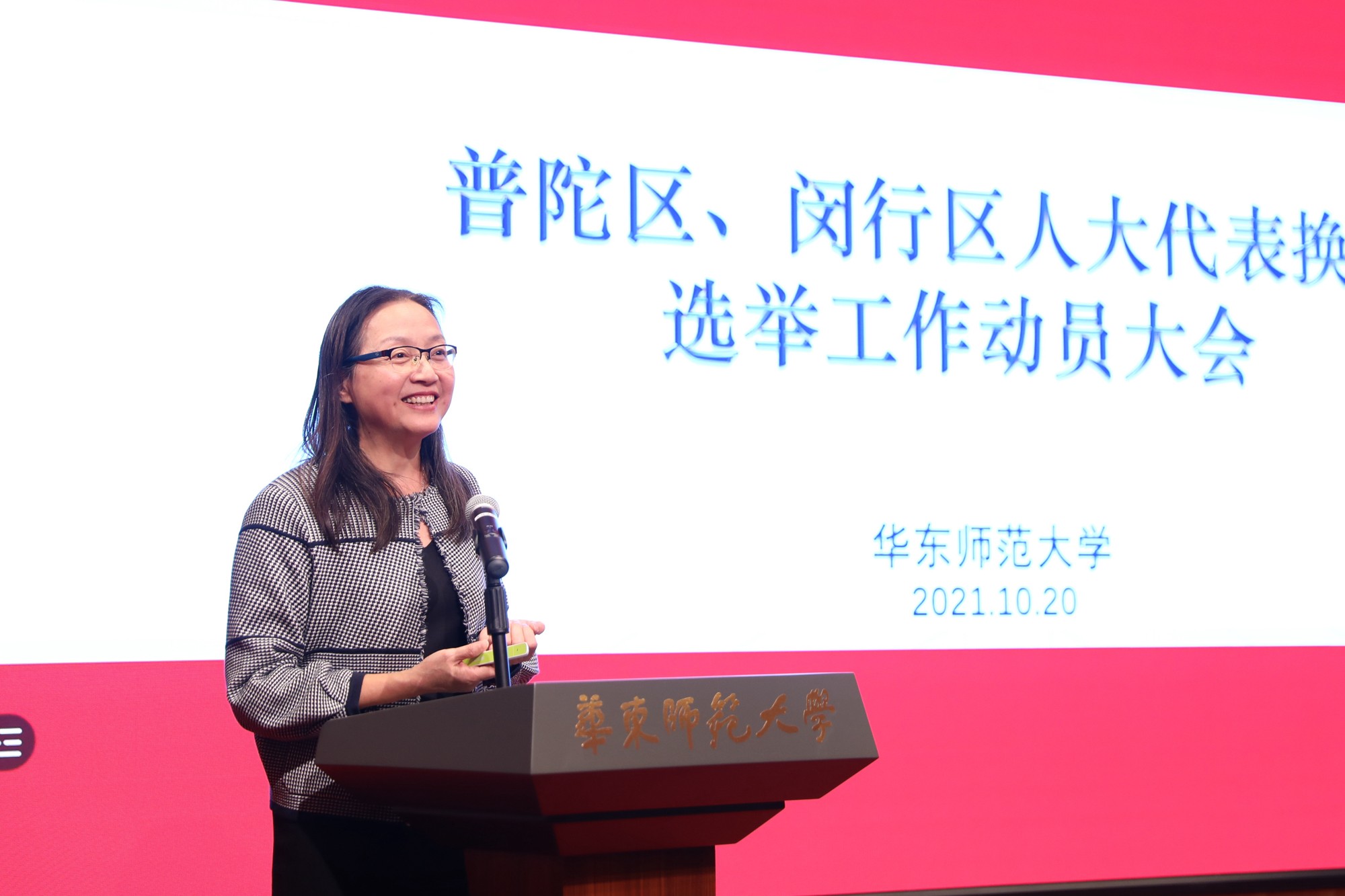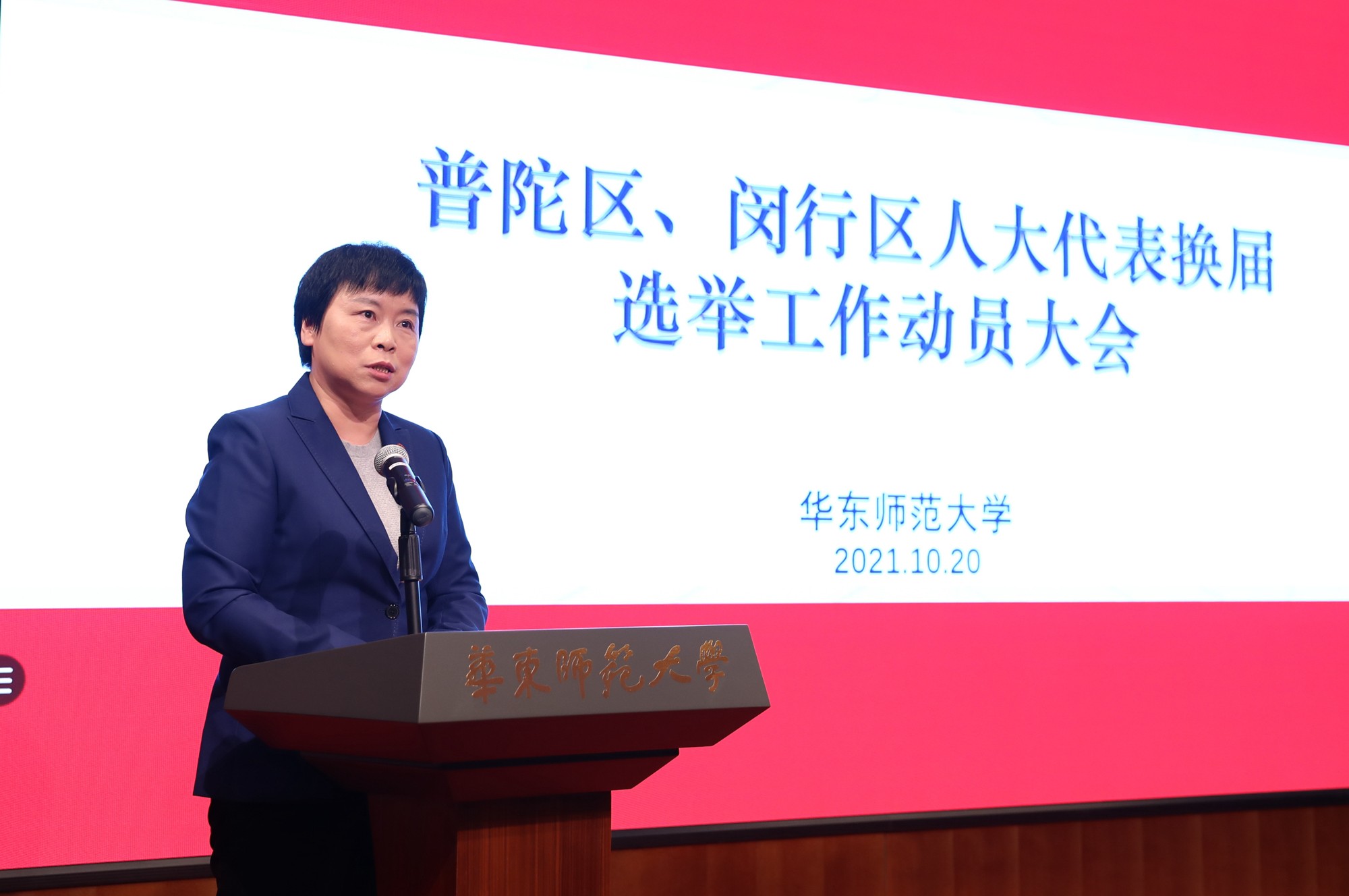 梅兵在动员讲话中表示,人大代表换届选举工作是华东师大师生政治生活中的一件大事。她对切实做好此次区人大代表选举工作提出三点要求:一是充分认识这次区人大换届选举工作的重要意义,切实增强工作责任感和使命感。梅兵指出,人大代表换届选举工作的政治性、法律性、政策性、程序性都很强,习近平总书记近日在中央人大工作会议上发表重要讲话,强调了“不断发展全过程人民民主”,推进社会主义民主政治建设,对具体地、现实地践行全过程人民民主提出了明确要求。二是认真把握区人大换届选举工作的基本原则,确保换届选举工作的正确方向,让换届选举过程成为坚持党的领导、坚持发扬民主、严格依法办事有机统一的具体体现。三是抓好区人大换届选举工作重点环节,确保选举工作圆满完成。要严格把握人选素质条件,认真落实“三上三下”提名推荐工作,严格落实疫情防控相关措施,切实做好11月16日选举日的投票选举工作。梅兵强调指出,这次区人大代表选举工作时间紧,任务艰巨、责任重大。希望各单位从全局和战略的高度认识和把握这项工作的重要意义,进一步增强责任心和使命感,以良好的精神状态,把握政策,周密部署,精心组织,统筹安排,切实抓好各项任务的落实,确保这次选举工作依法有序,顺利完成。