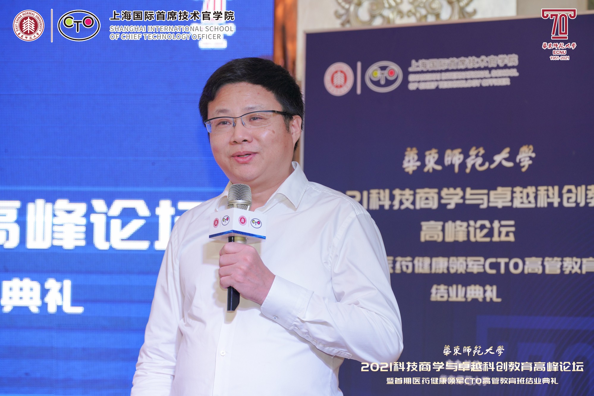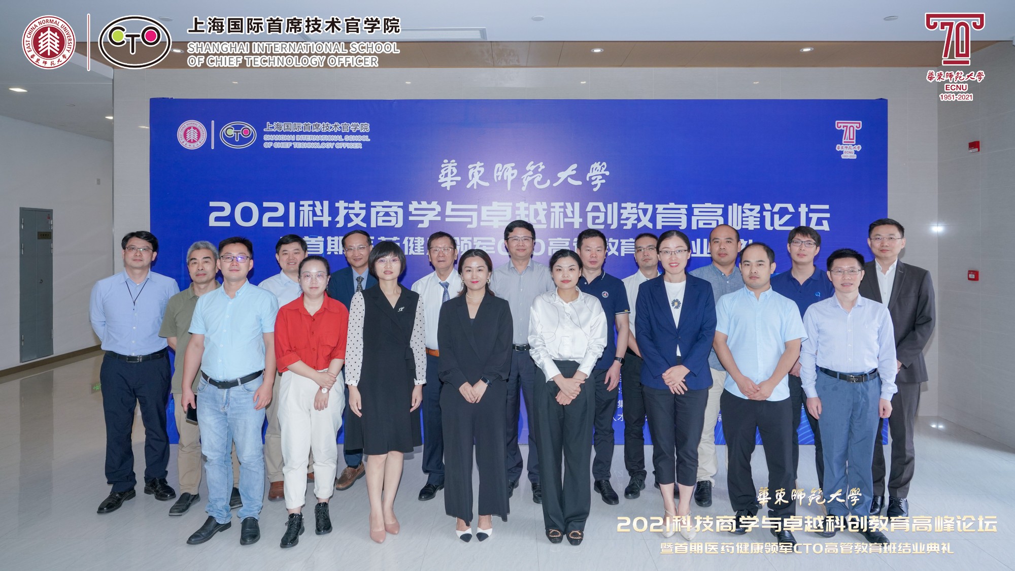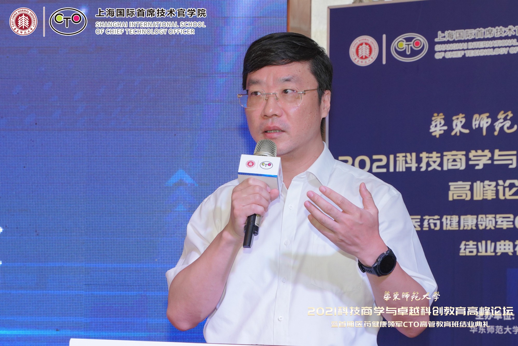 10月9日至10日,在万象城awcsport官网即将迎来七十华诞之际,由华东师大主办、上海国际首席技术官学院(以下简称“CTO学院”)承办、华东师大科技处指导的“2021科技商学与卓越科创教育高峰论坛暨首期医药健康领军CTO高管教育班结业典礼”举行。本次论坛得到上海市闵行区科委、上海紫竹高新区(集团)有限公司、上海市漕河泾新兴技术开发区发展总公司、上海临港漕河泾人才有限公司、上海中以创新促进中心、华东师大产业技术研究院、创新创业学院、亚欧商学院、转化科学与技术联合研究院、华东师大国家大学科技园的大力支持。
