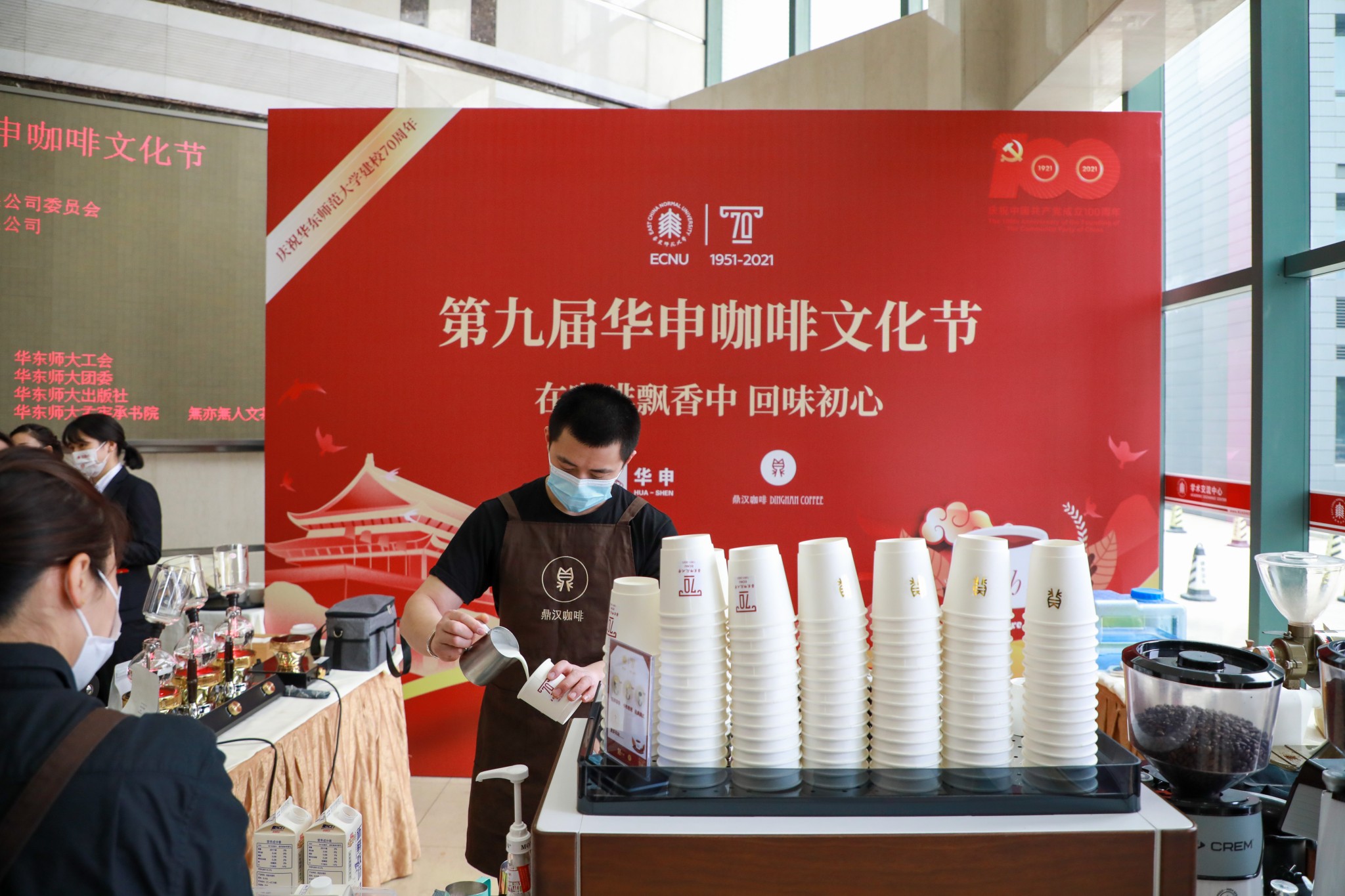 为了庆祝华东师大建校70周年,本届咖啡文化节通过情境朗诵、校史剧、音乐剧、音乐奏唱、名师讲座等艺术文化活动,以及消费帮扶产品、校庆文创产品展,为师生们带来听觉、视觉、味觉与触觉相融合的文化盛宴;通过搭建文化和艺术交流平台,让师生学习校史、党史知识,让独立思考的精神在师大得以绵延,让卓越的思想在学生中得以流传。