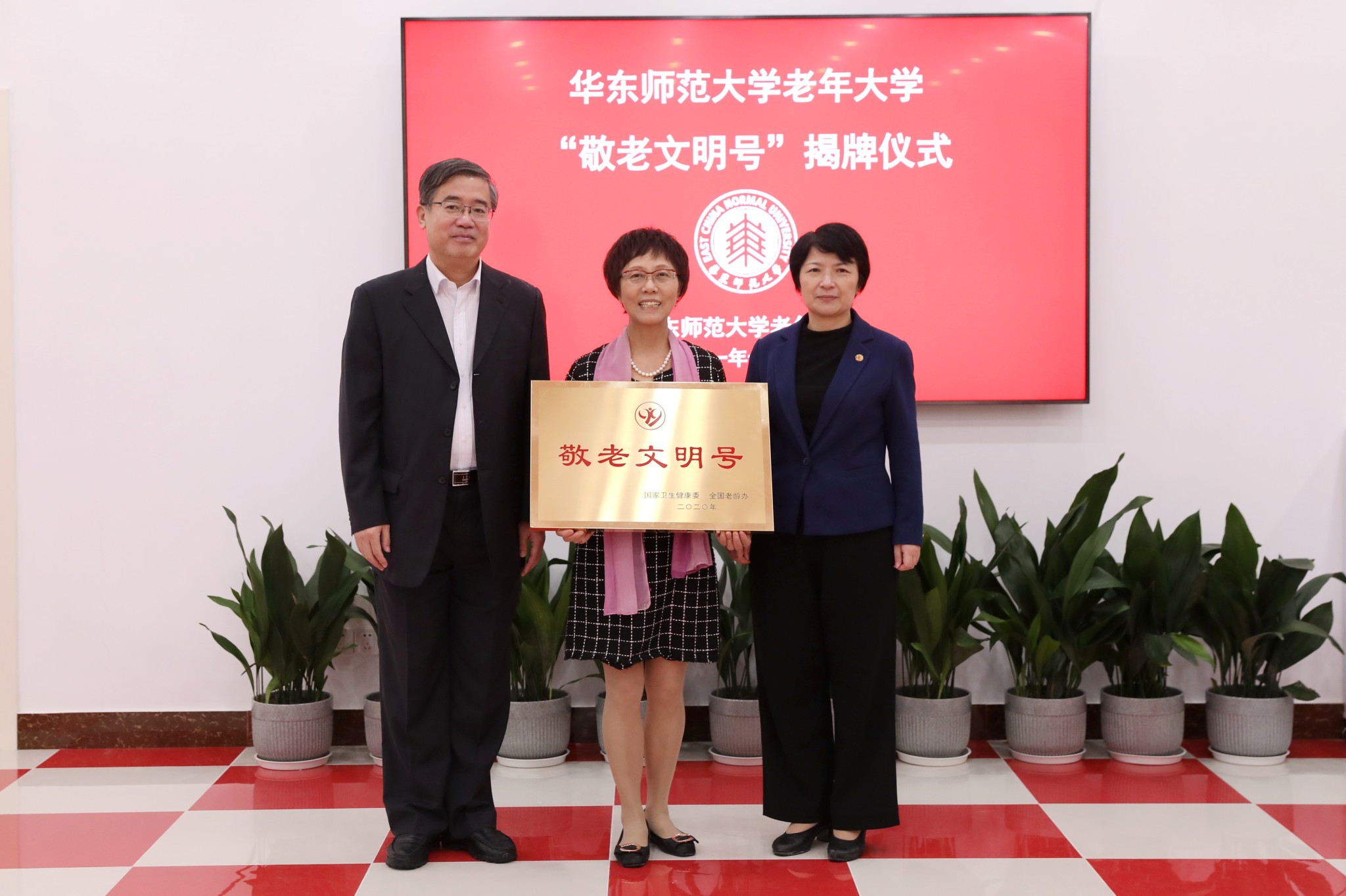 10月20日下午,华东师大党委书记梅兵,校党委副书记、老年大学校长朱民赴华东师大老年大学视察工作,向老年大学荣获“全国敬老文明号”表示祝贺,并为新落成的“退休教师之家”和“园丁雅苑”揭牌。
