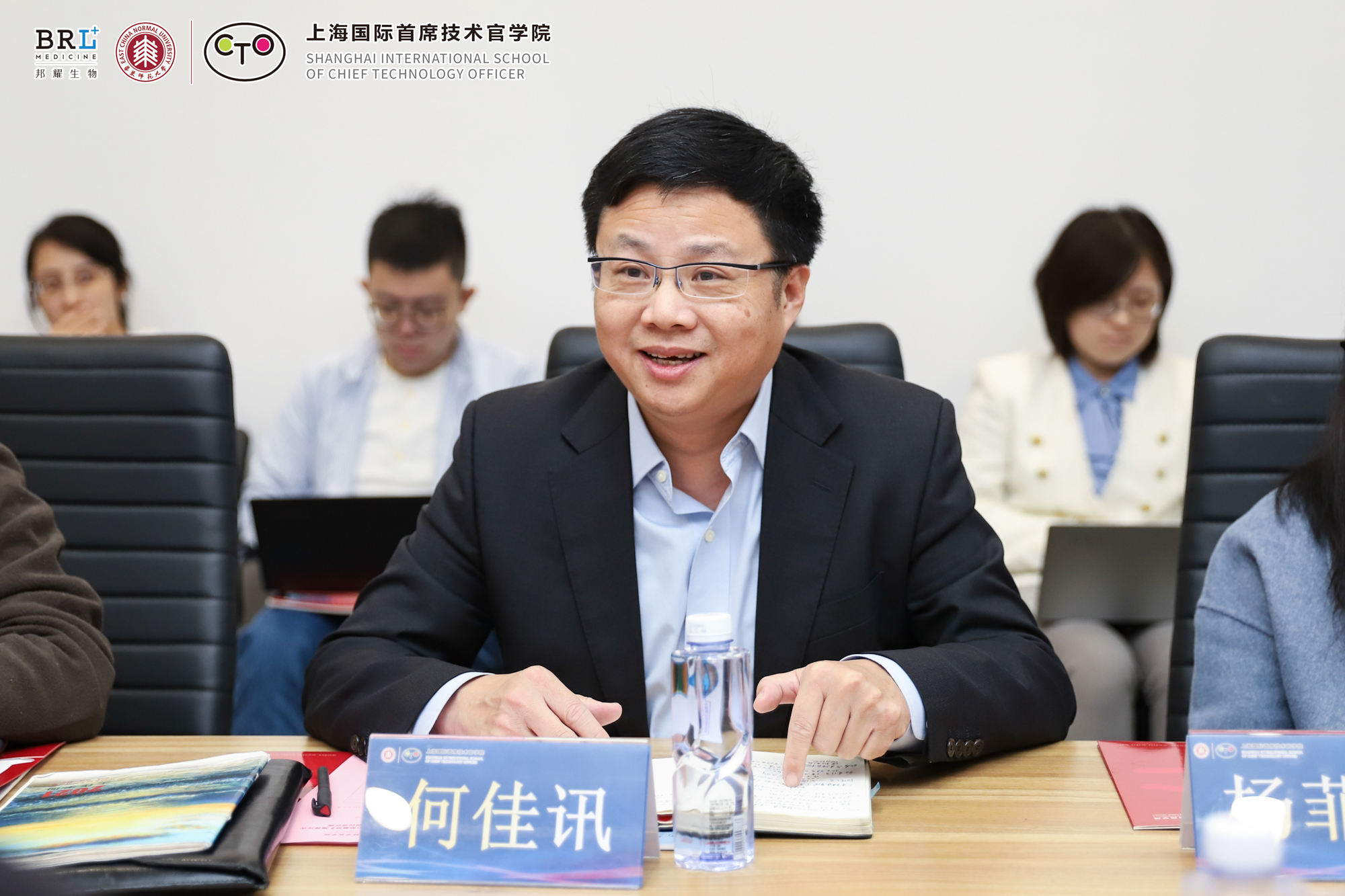 何佳讯教授为活动致辞。何佳讯表示,CTO学院与邦耀生物有共同的基因和文脉,双方都源自华东师大,且都具有教授带领科研团队的学术传承;双方有共同的资源和基础,CTO学院联动中以合作的转化科学与技术联合研究院资源,邦耀生物是研究院在科技成果转化领域做出的杰出成果,这为双方成立生物医药产教融合基地奠定基础;双方具有共同的目标和愿景,CTO学院在万象城awcsport官网校长、中国工程院院士钱旭红的领导下成立,率先提出“科技+”和“商学+”结合、“科学家精神”与“企业家精神”结合培养首席技术官和技术领袖的创新理念,创立本、硕、博学位教育金字塔体系,并在国际商务(国际生中国通方向)专业硕士、面向高科技产业的高端品牌管理学术硕士、生物医药高管教育方面都做出了从0到1的突破,邦耀生物“以基因编辑技术引领创新”为使命,在生物医药技术上做出很多重大突破性创新。希望双方基于共同的目标和愿景引领,建立紧密合作,为上海乃至全国的教育创新和科技产业发展作出创新性贡献。