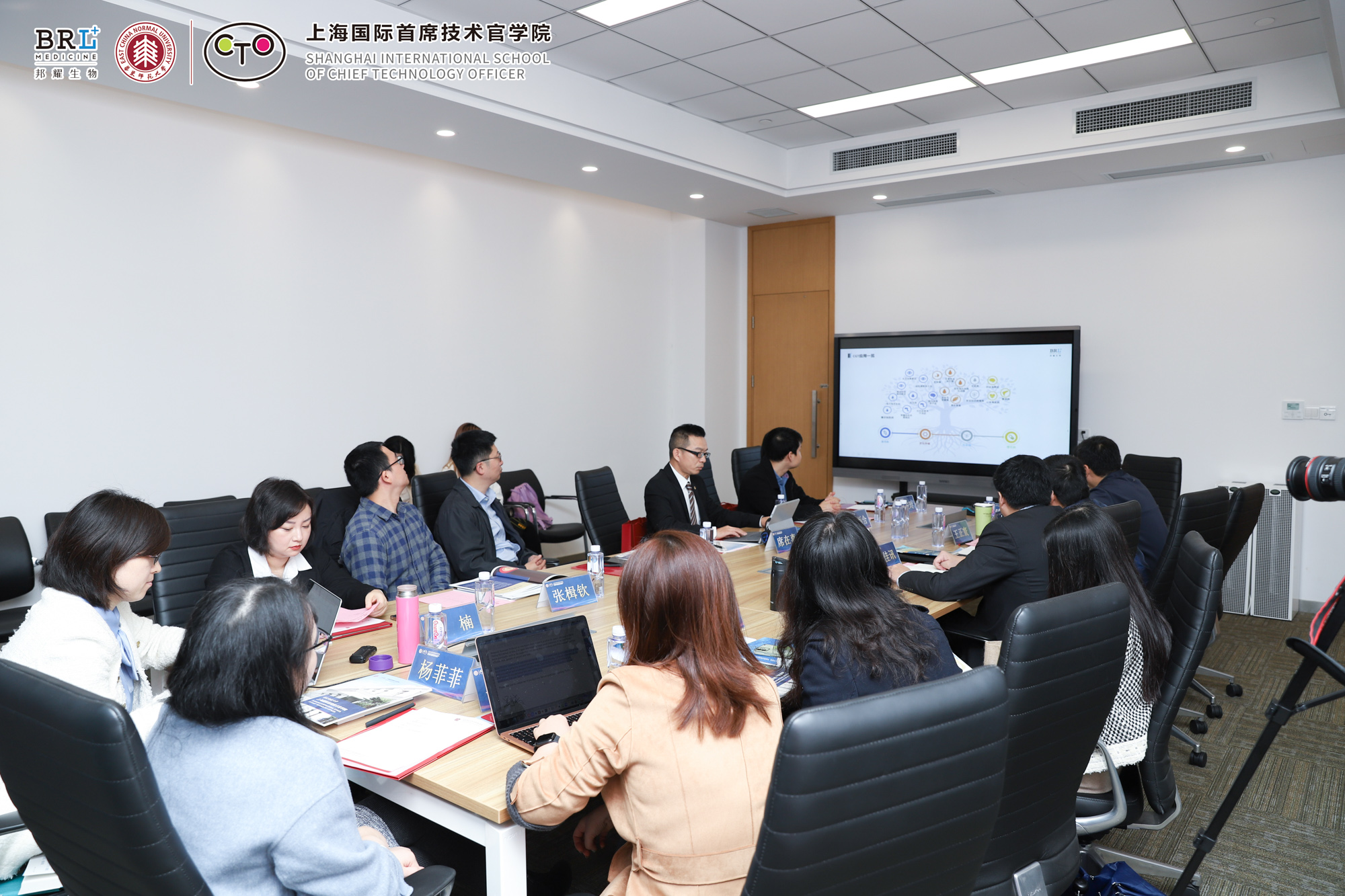 在细胞和基因治疗技术领袖人才培养研讨会上,与会企业高管与学院教师团队围绕产教融合培养生物医药领域技术管理人才主题展开热烈研讨。席在喜等邦耀生物高管畅谈了企业的痛点和技术管理人才需求。亚欧商学院教师王雪华等提出了学院在人才培养和科研合作方面的想法和需求。席在喜指出,邦耀生物技术高管具有管理理念学习的需求,同时对开拓国际事业的海外高层次人才有大量需求。希望与CTO学院一起,把前沿理论与一线实践结合,共同打磨CTO高管培训课程,邦耀生物可以提供企业导师、学生就业等支持。何佳讯表示,亚欧商学院的所有学位项目都是全英文教学,创立五年来已吸引来自46个国家的国际生就读,可以为邦耀生物海外人才需求提供支持。CTO学院与邦耀生物基于共同的理念,结合企业实践经验和学院的教学优势,双方以合作建立的“生物医药产业CTO高管教育与创新战略示范基地”为平台,推进在高管教育、课程开发、智库研究、产教融合等方面建立多维度合作,解决科创企业发展问题,为行业作出表率、树立标杆,同时也推动科创教育事业的创新发展。