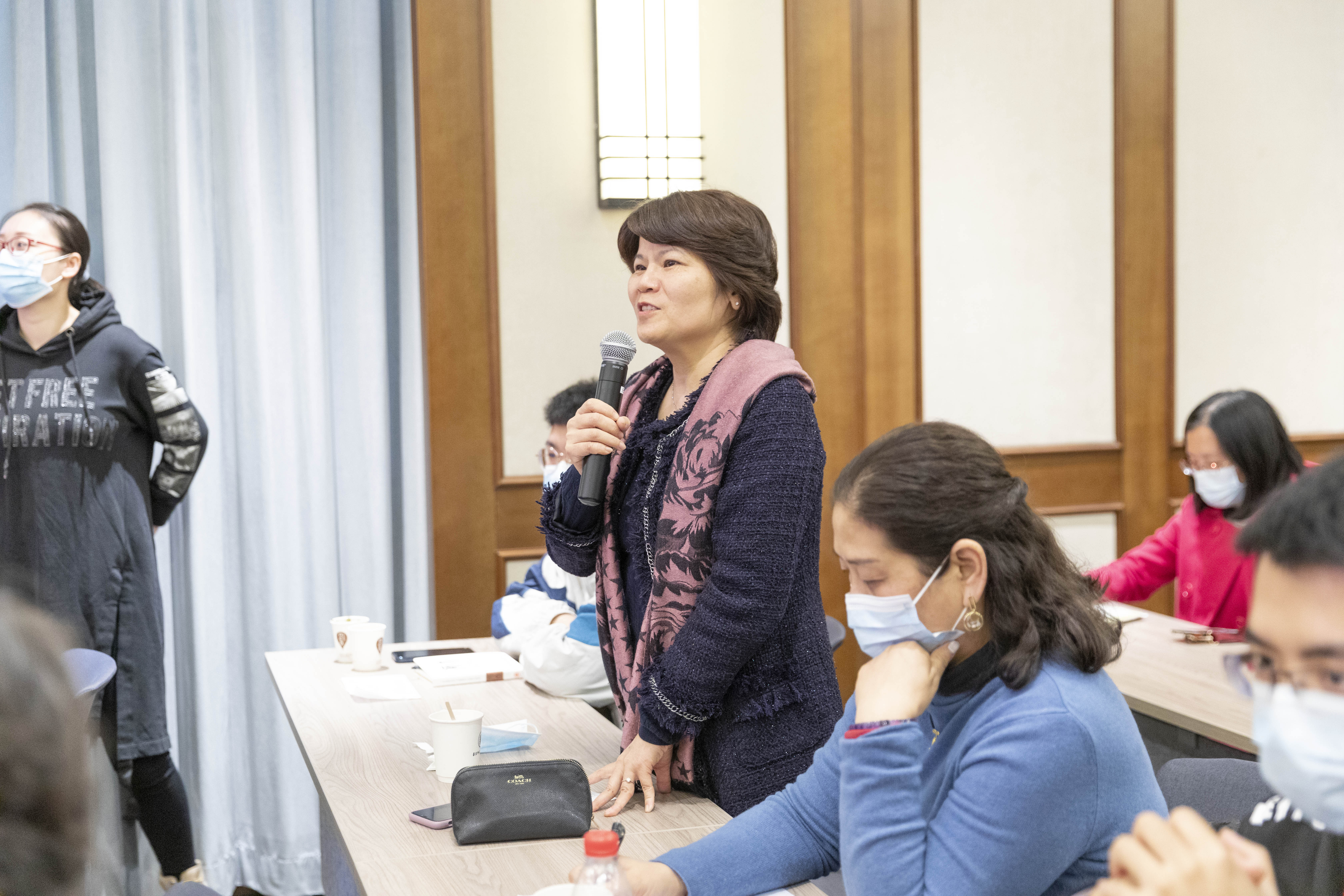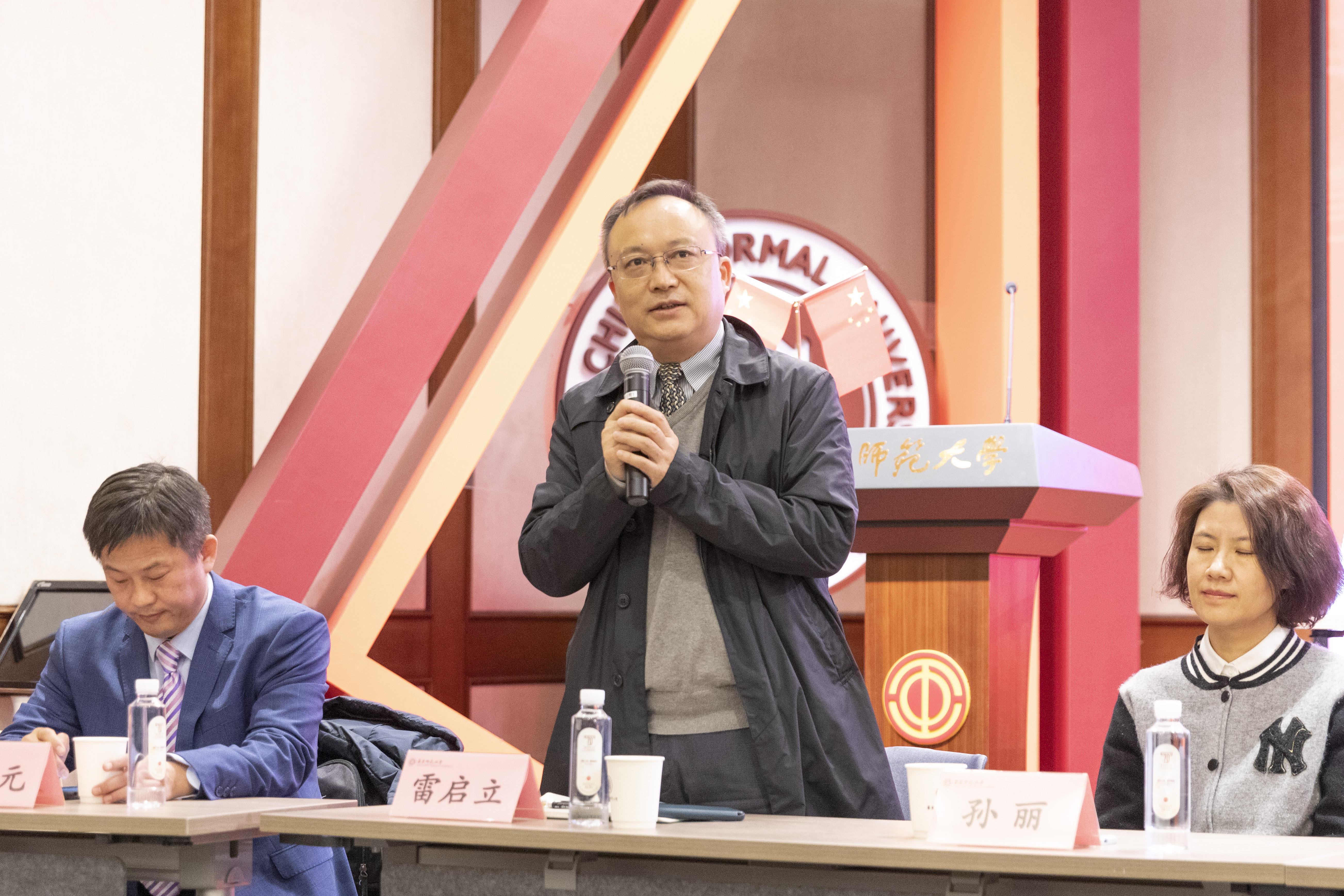 华东师大选举办公室主任、工会常务副主席王平主持见面会