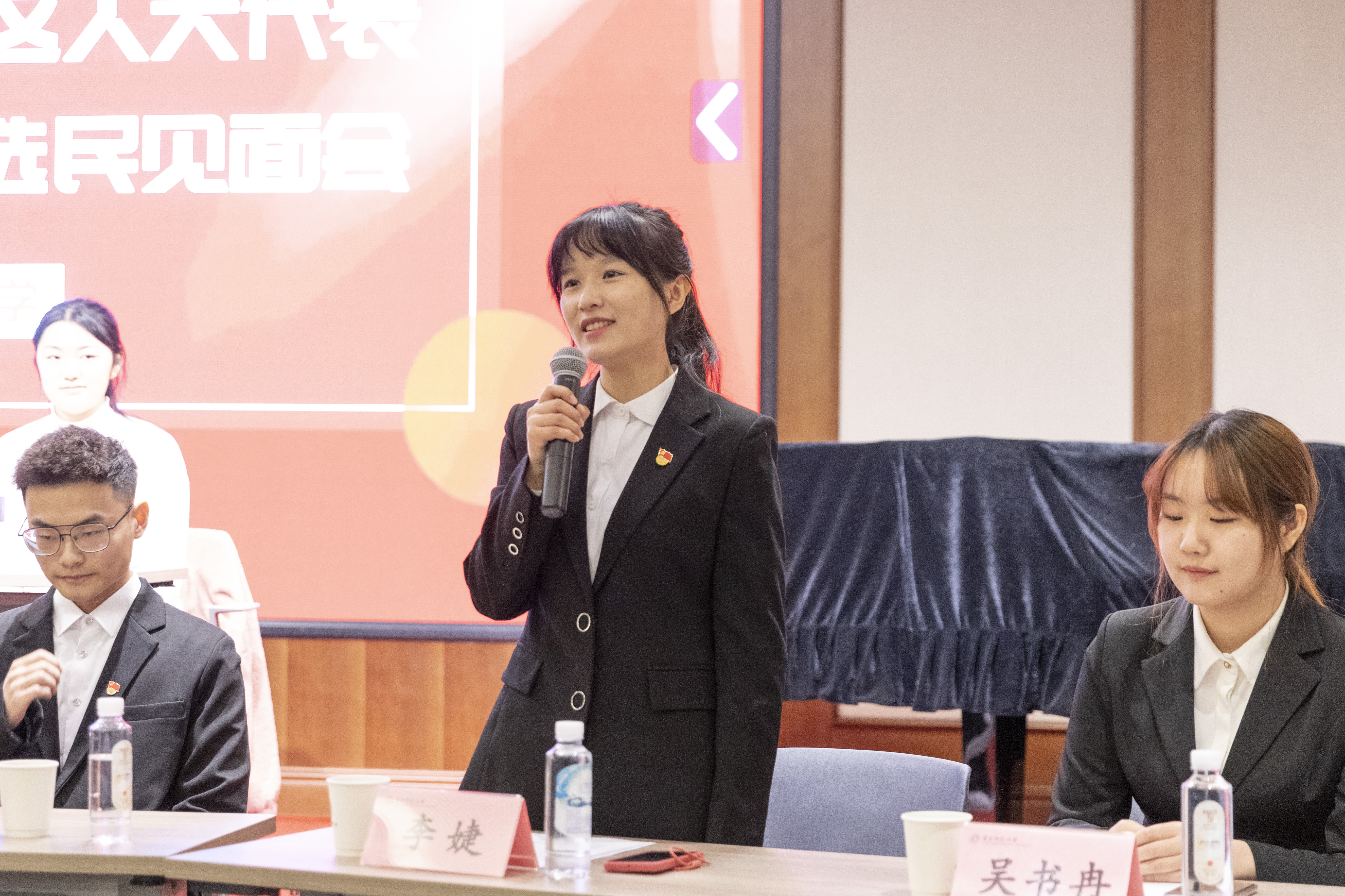 选民代表们还就正式代表候选人当选代表后如何履行代表职责如连任以后的工作规划、提案相关的进展、如何发挥代表作用等问题,对社会热点如“双减”政策、监督政府预决算情况、妇女群体的“急难愁盼”问题、独居老人互助养老机制、大学生创新创业政策、大学生权益保障问题等,对学校管理及师生权益如学校房产有偿使用问题、教职工子女的入学问题等作了提问,正式代表候选人对选民代表关心的问题逐一作了解答。