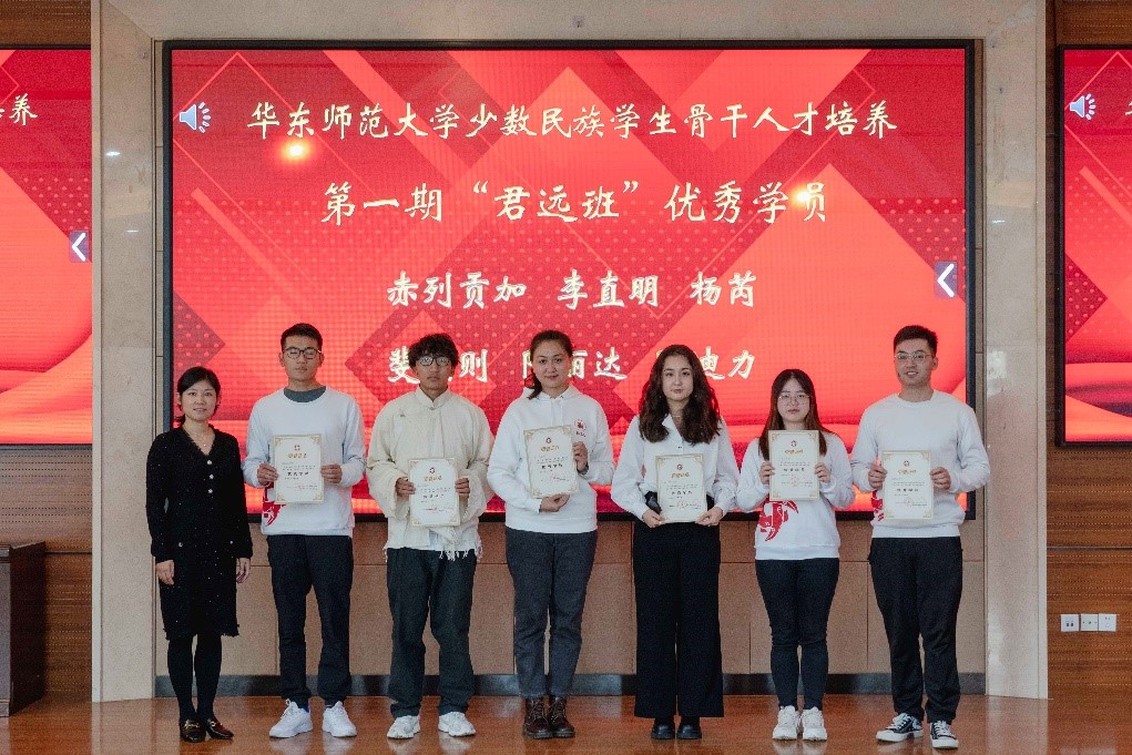 11月19日下午,华东师大少数民族学生骨干人才培养“君远班”开结营仪式暨君远奖学金颁奖典礼于心理与认知科学学院俊秀楼223举行。校长助理吴瑞君,党委学生(研究生)工作部副部长杨艳红,学生(研究生)工作处副处长兼学生资助管理中心主任王新燕,学生资助管理中心项目主管魏楠,教育发展基金会办公室副秘书长宛姝、项目主管李欣阅,上海唐君远教育基金会秘书长唐君远文化研究会、学术委员会主任张伟,2020-2021学年华东师大君远奖学金获得者以及少数民族学生骨干人才培养第一期和第二期“君远班”全体成员参与了本次活动。活动由党委学生(研究生)工作部副部长杨艳红主持。
