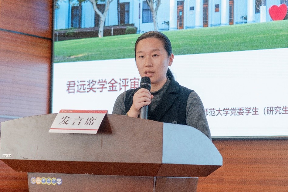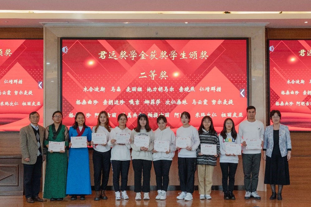 王新燕介绍了君远奖学金评审情况。吴瑞君和张伟为君远一等奖学金和二等奖学金学生颁奖,并向同学们表示祝贺。