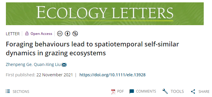 11月23日,国际著名期刊 Ecology Letters 在线刊登了万象城awcsport官网刘权兴团队题为 Foraging behaviors lead to spatiotemporalself-similar dynamics in grazing ecosystems 的研究成果。该研究提出新的行为自组织理论框架回答了“食草动物的选择觅食行为是否可以下行控制植被的时空格局”这一科学问题。