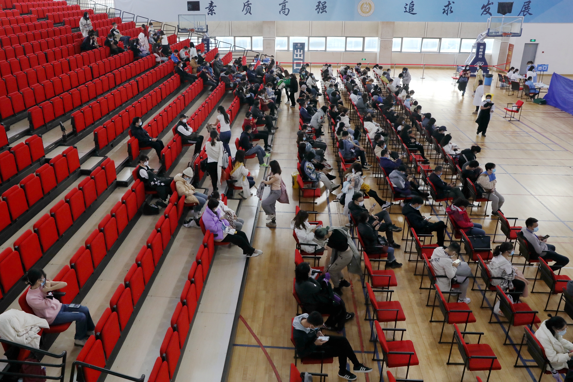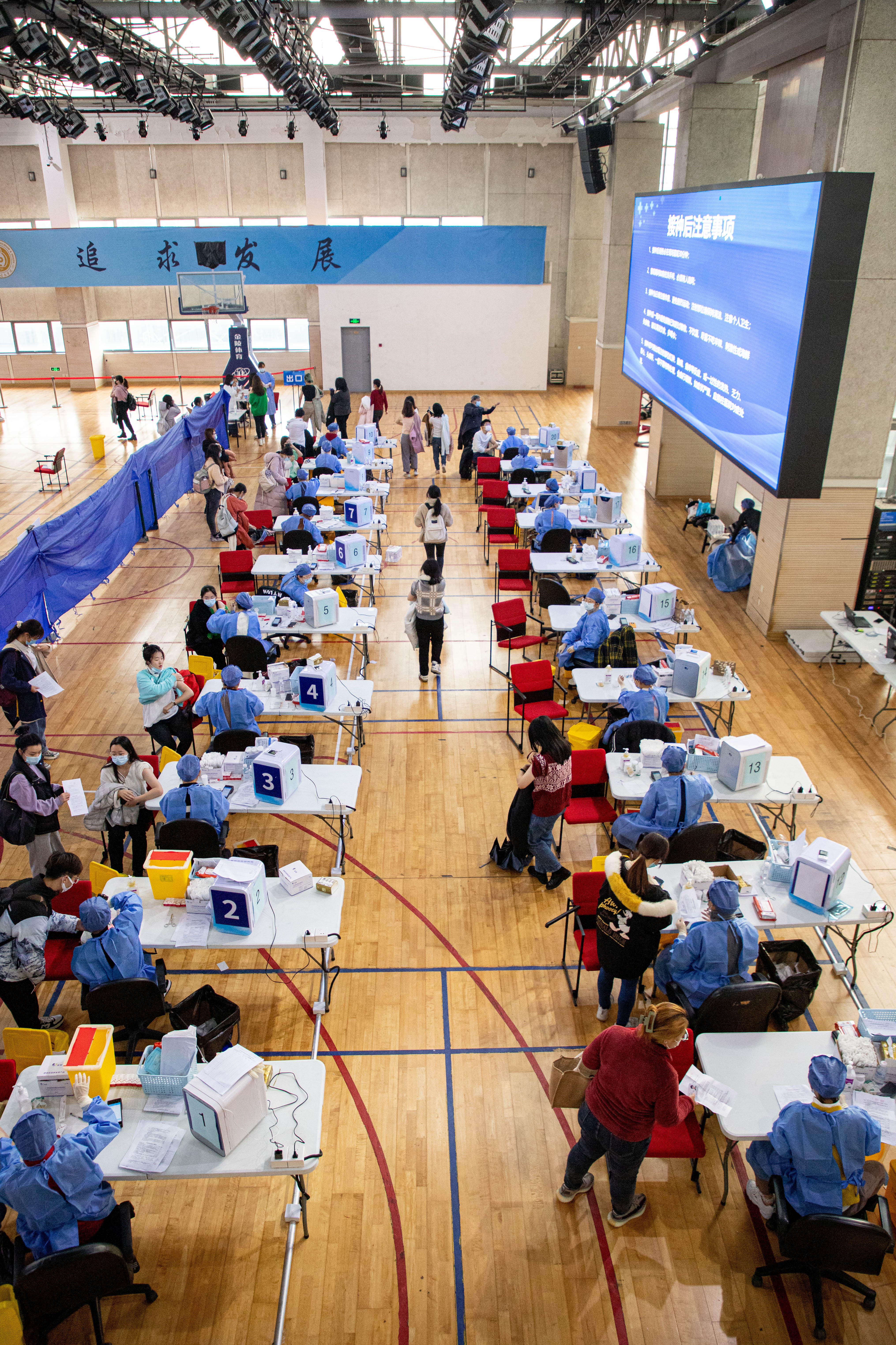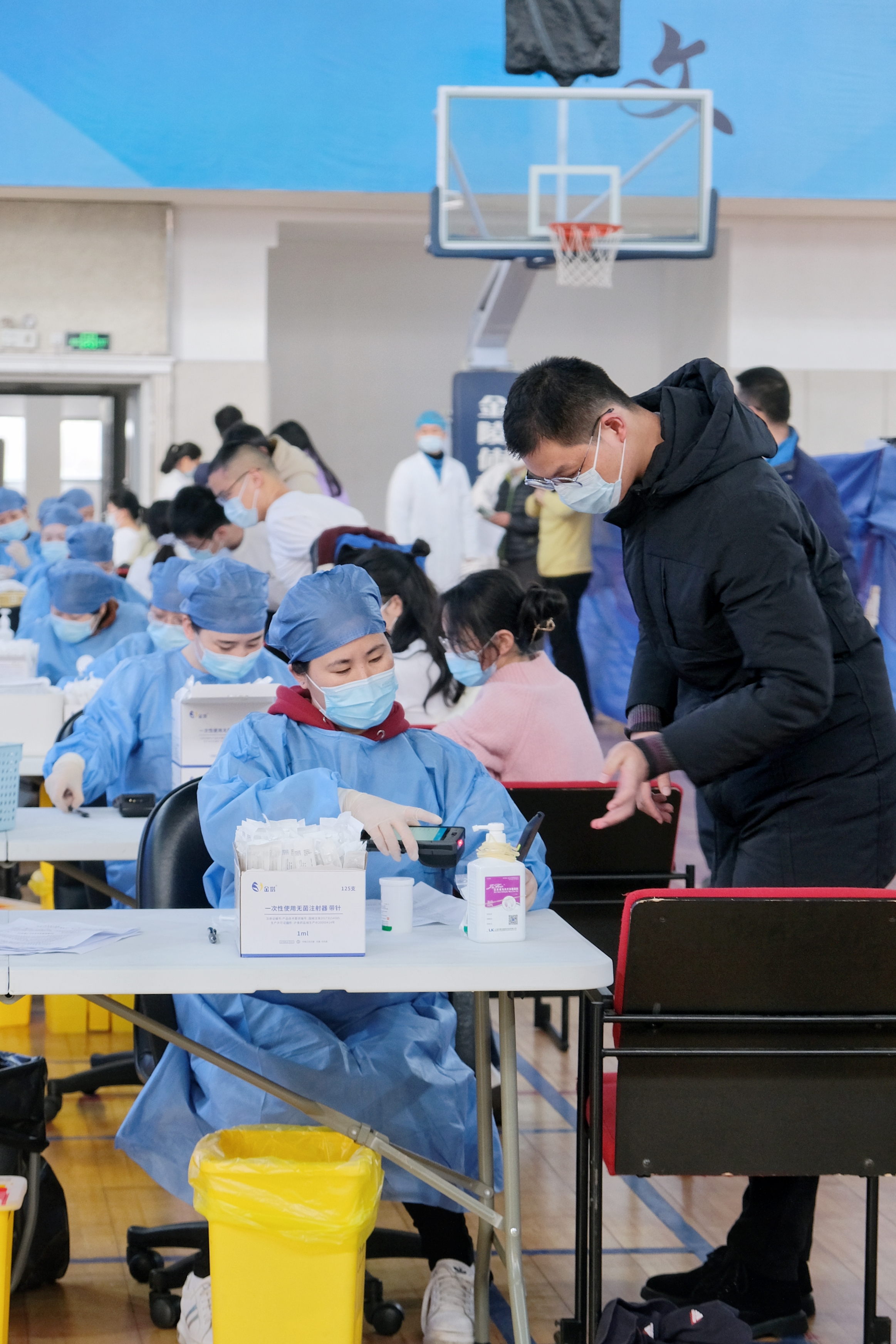 11月30日,虽然大风降温,华东师大闵行校区体育馆人来人往,大家一起为全民免疫屏障助“一臂之力”。为进一步巩固新冠病毒,人群免疫屏障,华东师大按照“知情同意,应种尽种”原则,11月30日和12月1日在闵行校区集中组织开展新冠病毒疫苗加强免疫接种。