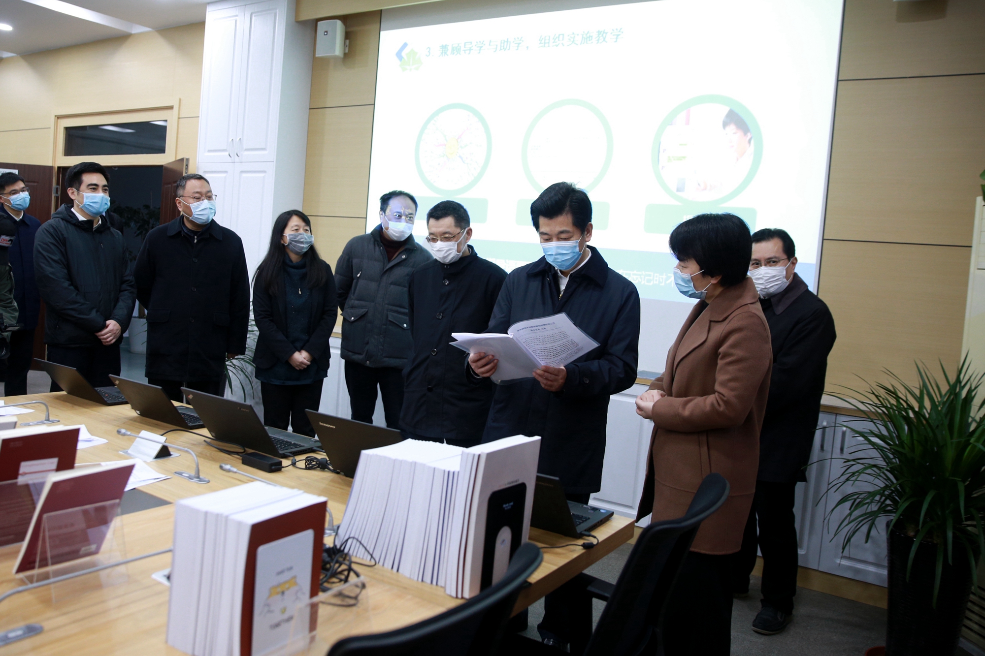 廖国勋指出,下一步,市委市政府会根据疫情,做好研判和决策,教育系统要按照市委市政府的决策,全力以赴落实好各项防控措施,进一步筑牢校园疫情防控线,坚决打赢疫情防控阻击战。他还特别叮嘱市教卫工作党委、市教委负责同志和有关方面负责同志,一定要把师生安全放在首位,守住底线不动摇。