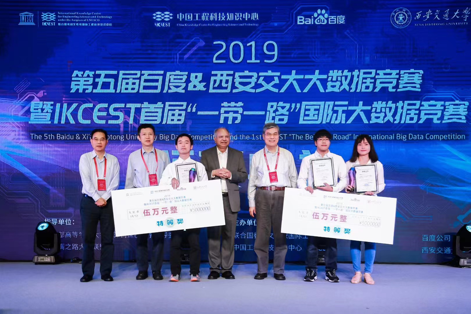 周杰(左三)获“一带一路”国际大数据竞赛特等奖