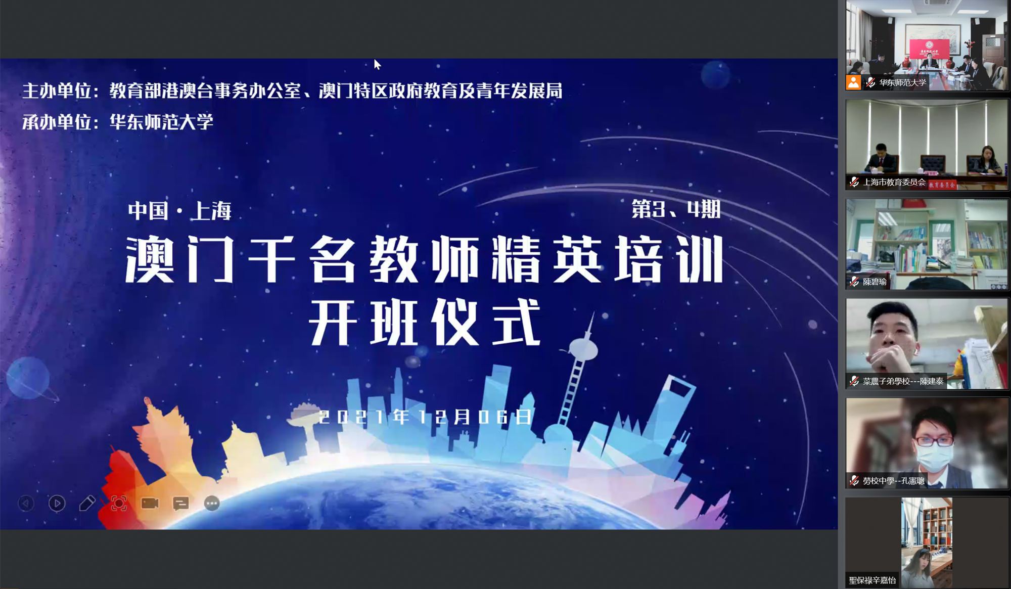 12月6日,澳门千名教师精英培训计划(第三、第四期)开班仪式在万象城awcsport官网举行,仪式线上线下同步举行。该项目由教育部港澳台事务办公室、澳门特区政府教育及青年发展局联合主办,华东师大承办。