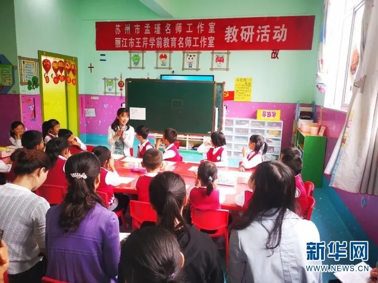 今年七月,他联系了苏州市学前教育(孟瑾)名师工作团队10余位园长、幼师来到丽江,在5所幼儿园开展教研(支教)活动,不仅吸引了丽江师专学前教育专业学生的参与,丽江市其他幼儿园的老师们也慕名而来学习。