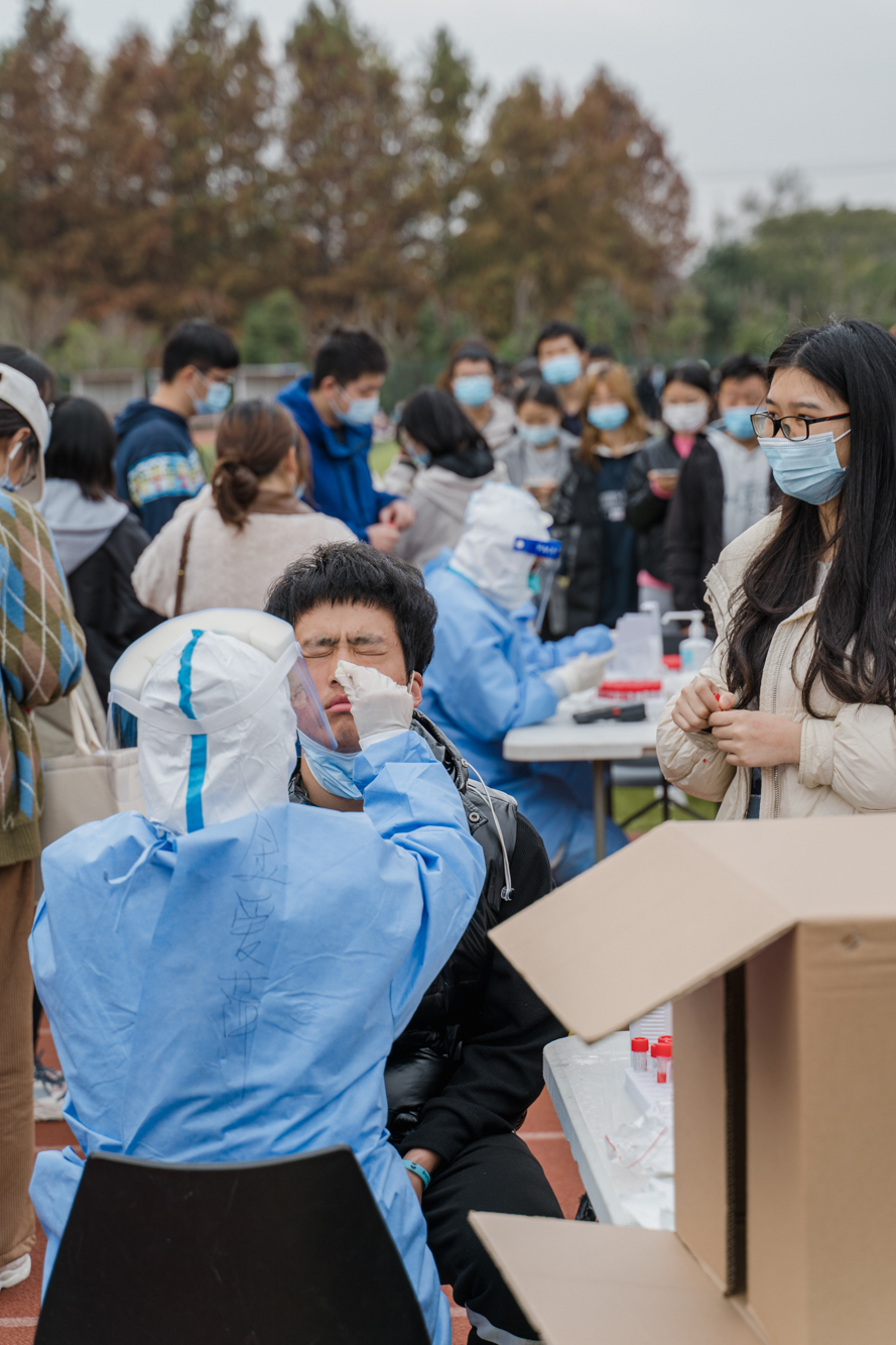 今天下午开始的第二轮全员核酸检测已近尾声,后续闵行校区师生将开展14天自我健康管理。与此同时,加强针注射工作今明两天正在普陀校区进行。