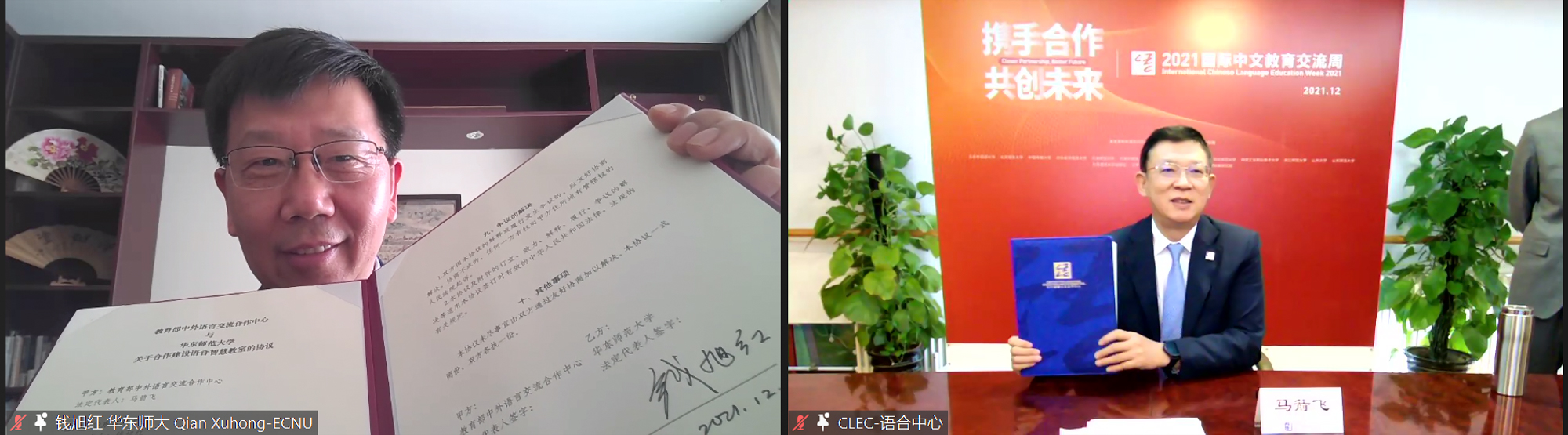 中外语言交流合作中心主任马箭飞、华东师大校长钱旭红代表双方签署合作协议