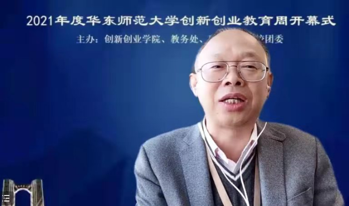 戴立益致辞并宣布创新创业教育周开幕。戴立益指出,2021年学校在课程建设、平台建设、项目培育、赛创融合等方面开新局、出实招,在创新创业教育方面取得了新成果、达到了新高峰。他希望全校师生在创新创业教育周回首过往,总结经验,展望未来,并提出三点努力的方向:一是回应时代需求,针对发展痛点,做创新创业教育攻坚者;二是聚焦卓越育人,提升教育质量,做创新创业教育变革者;三是立足文化涵育,养成创造品质,做创新创业教育传道者。他期待,站在“两个一百年”的历史交汇点,面对华东师大的发展新起点,学校继续推动创新创业教育,赋能卓越育人,打造华东师大创新创业教育升级版。