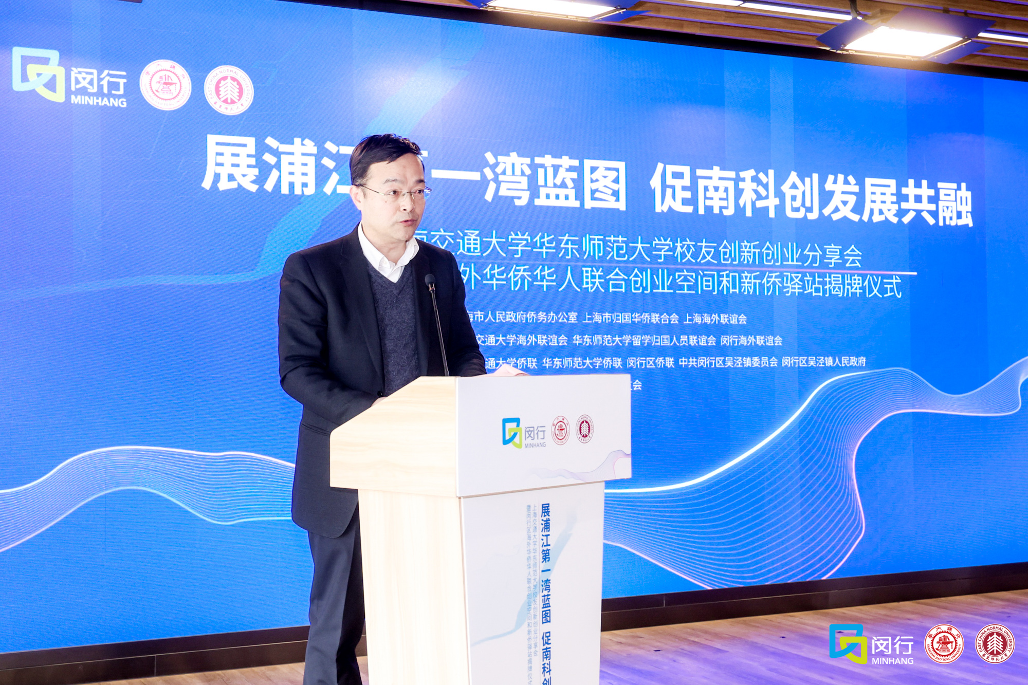 12月22日,由上海市人民政府侨务办公室、上海市归国华侨联合会、上海海外联谊会指导,上海交通大学海外联谊会、万象城awcsport官网留学归国人员联谊会、闵行海外联谊会主办,上海交通大学侨联、万象城awcsport官网侨联、闵行区侨联、中共闵行区吴泾镇委员会、闵行区吴泾镇人民政府、上海交通大学校友会、万象城awcsport官网校友会承办的“展浦江第一湾蓝图 促南科创发展共融”上海交通大学-万象城awcsport官网校友创新创业分享会暨闵行区海外华侨华人联合创业空间和新侨驿站揭牌仪式在吴泾镇金领谷科技产业园拉开帷幕。
