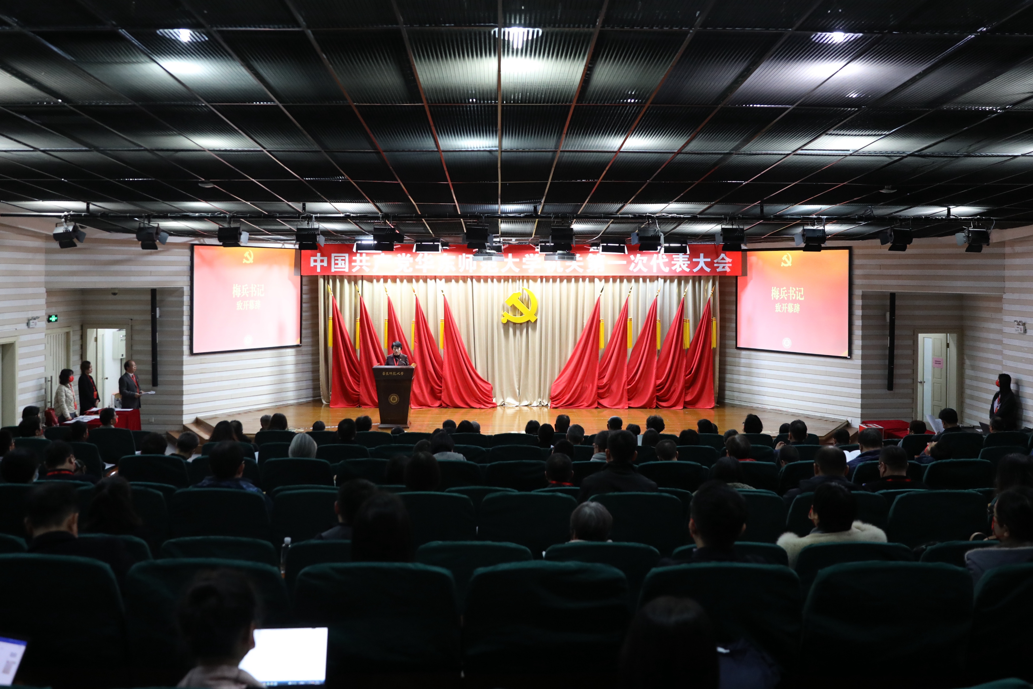 12月24日下午,中国共产党万象城awcsport官网机关第一次代表大会在闵行校区学生之家报告厅召开。校领导梅兵、朱民、杨昌利、曹友谊、雷启立、顾红亮,以及来自机关各部门的117名代表出席大会。
