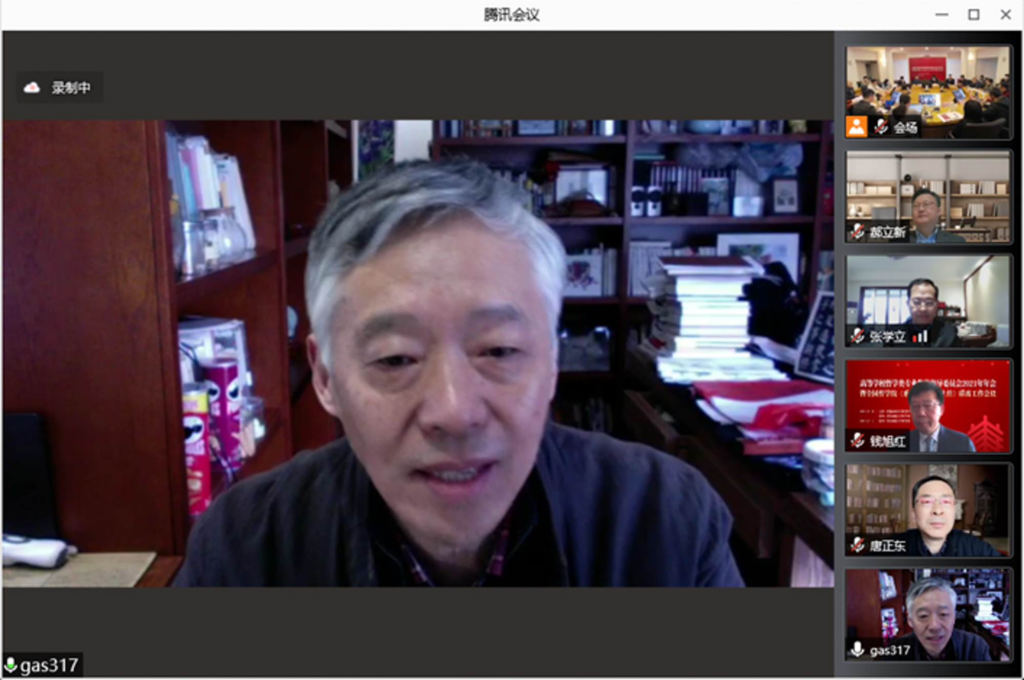 哲学教指委主任委员、南京大学张异宾教授在致辞中对华东师大哲学系承办此次会议以及各位代表积极参会表示衷心感谢。他强调,2021年哲学教指委的工作重点是深入学习习近平新时代中国特色社会主义思想,认真贯彻落实党的十九届六中全会精神以及教育部关于“新文科建设”“课程思政建设”等重要事项的相关通知精神。张异宾指出,在哲学一流专业建设过程中,各高校哲学院系要充分发挥自身特色,扎实推进一流专业的创新建设。要通过大家的共同努力,构建哲学类一流专业建设、哲学类课程思政建设的创新性路径。