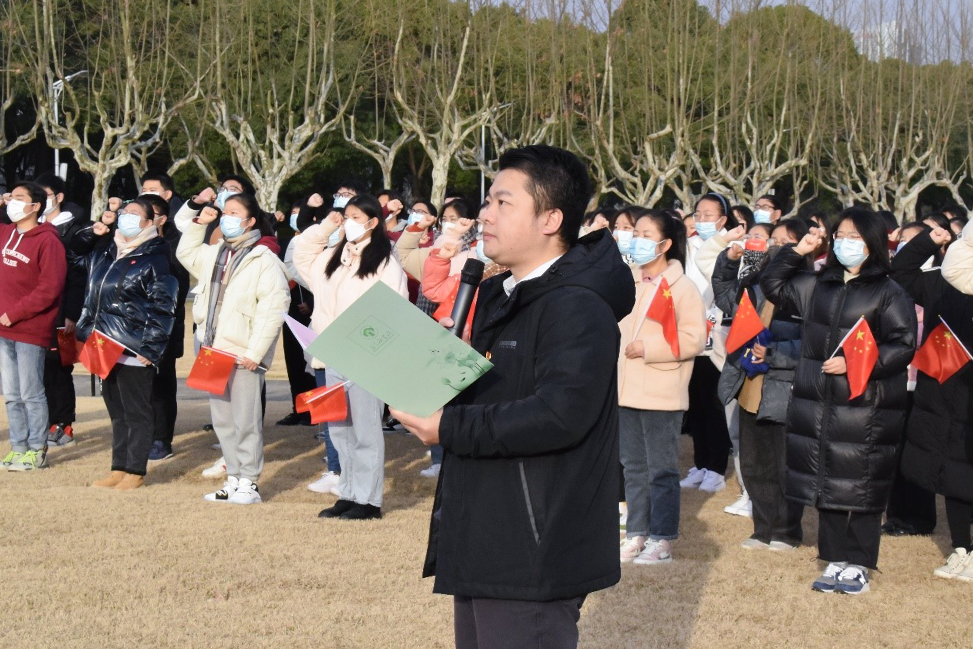 新年第一天,华东师大师生国旗下歌唱祖国