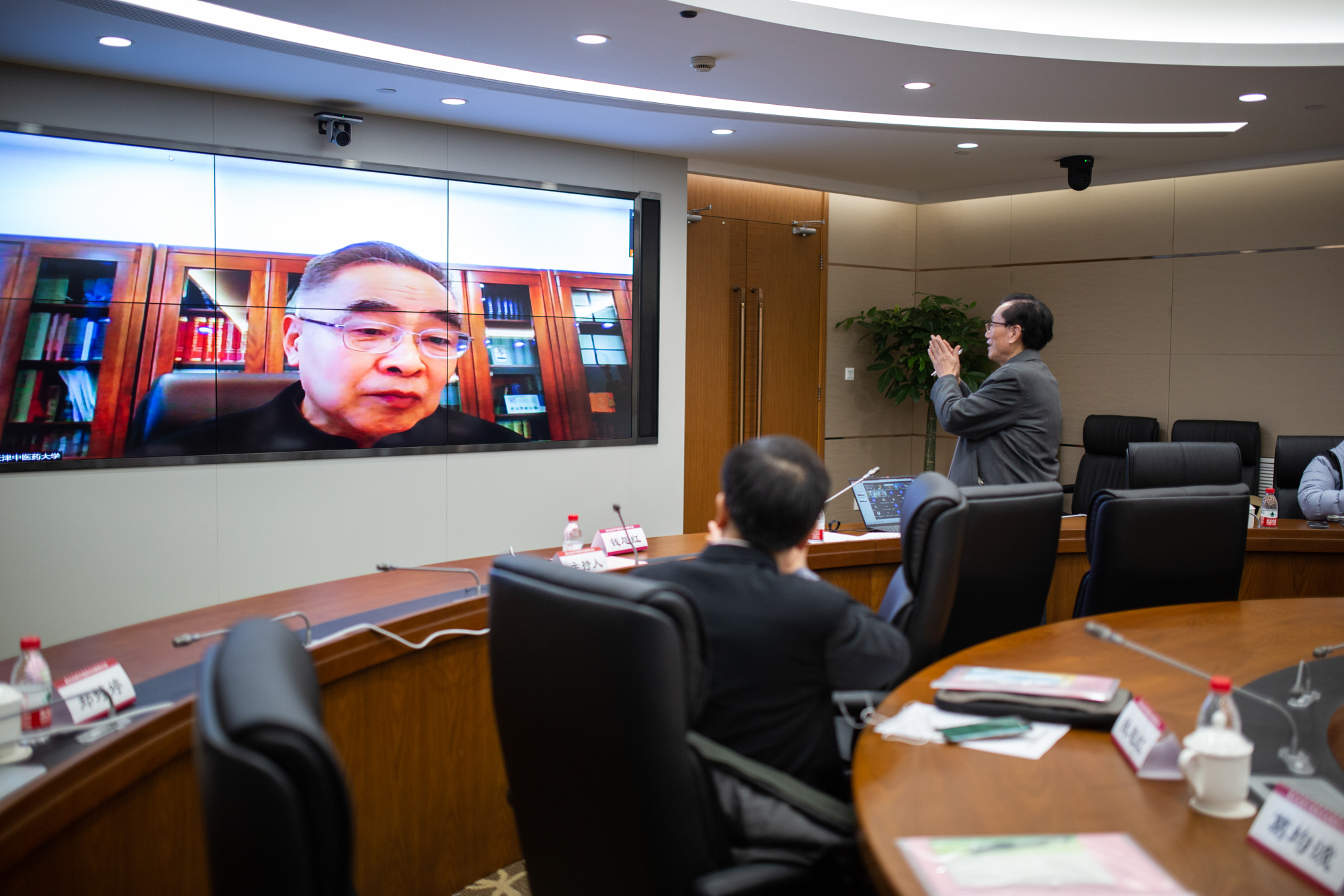 张伯礼院士与刘珊林教授在会上在线讨论中医药组分与抗氧化功效