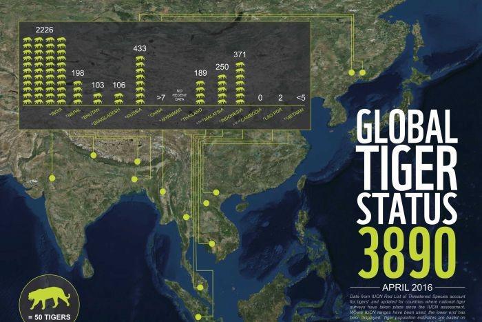 事实上,在20世纪初,虎的数量可能还超过十万只,但如今地球上现存的虎数量可能只有不到4000只。如今,虎的分布区只有其历史分布区的4% 左右。