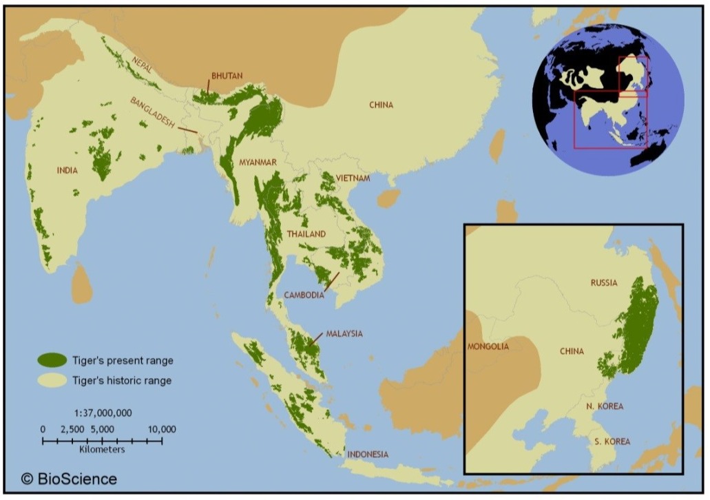 事实上,面对日益兴盛的人类文明,无论是分布于何处的虎,都在节节败退。