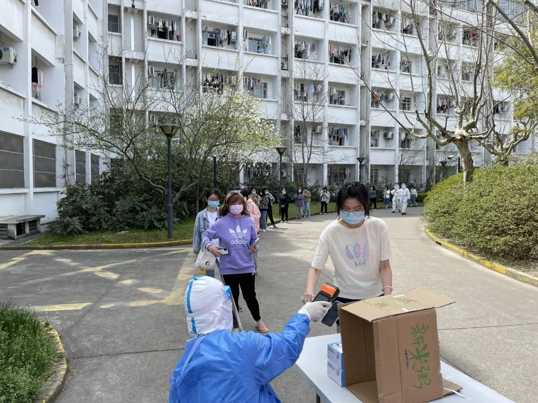 化身大白的学生志愿者以及在闵行校区的教职工,都参与到核酸检测维持秩序和校内送餐等志愿者服务工作中,争分夺秒只为按时完成全员核酸,并为同学们送上每一餐,感谢每一位华东师大人理解、支持、配合。