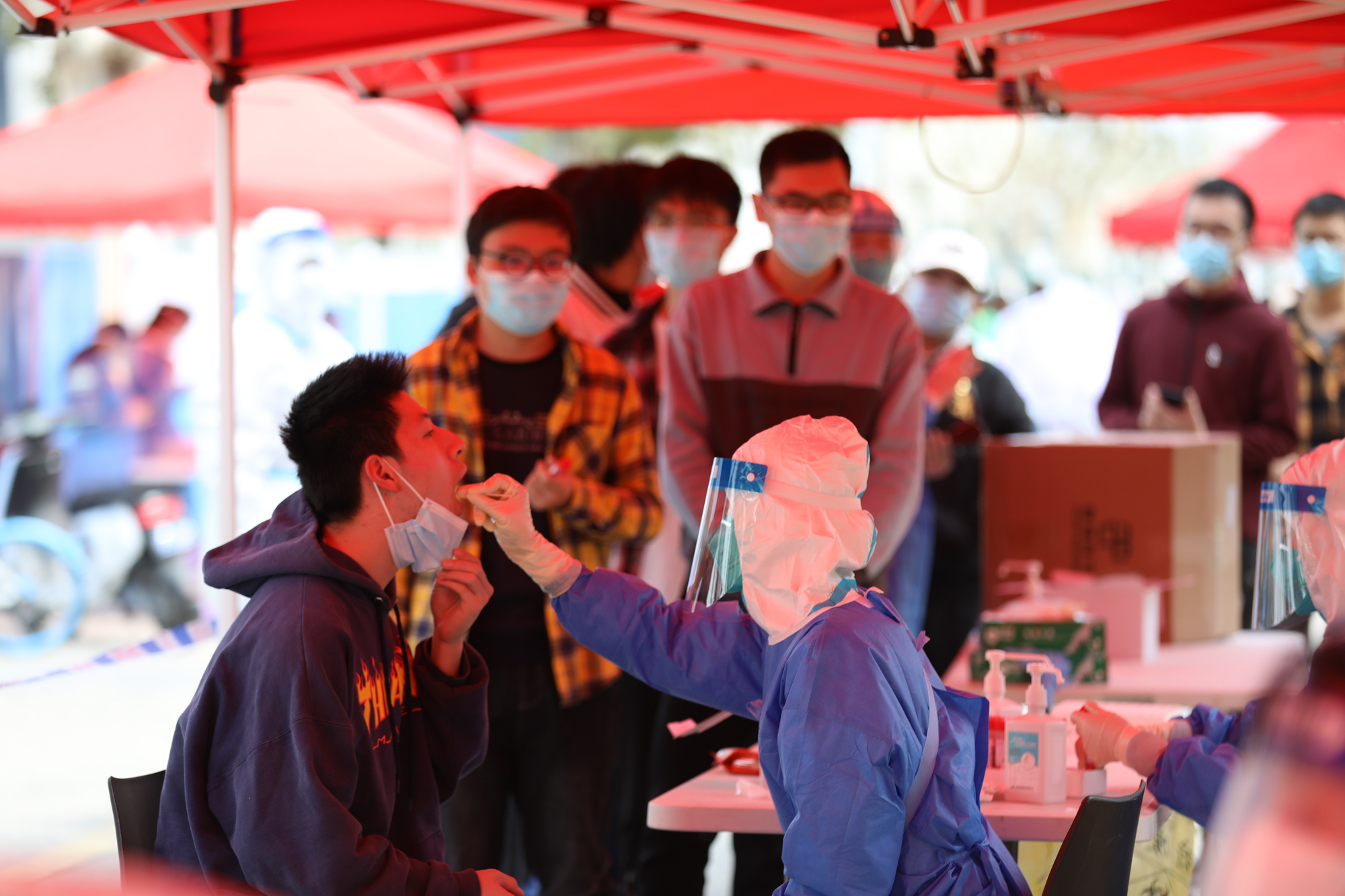 3月16日,华东师大闵行校区配合疾控部门流调,根据有关指令从上午起进行第三轮全员核酸检测。