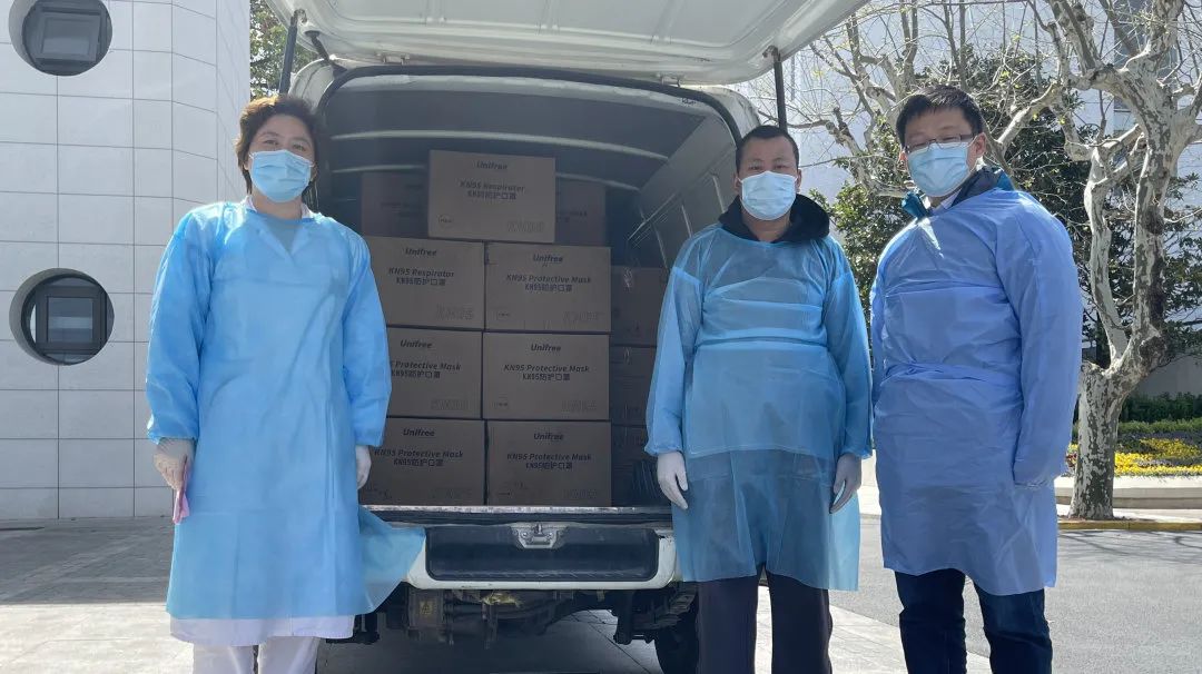 3月30日一早,载满旭辉情谊和应急防疫物资的货车抵达学校闵行校区,为抗疫一线师生送上最及时和切实的保障。1万只N95口罩、10万只一次性医用外科口罩、5千套隔离服、2千套医用连体连脚灭菌防护服、10万只丁晴医用手套、2万只防护面屏罩,3600份即热米饭、方便食品-泡粉(荤),2000支维生素C泡腾片!