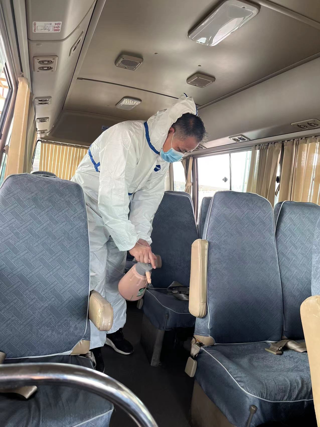 “早上7点开始工作,凌晨一两点钟回到学校再做消杀,半夜、清晨出车是经常发生的,”栾立文说,“我记得最晚大概是早上5点回到学校,能在12点前入睡的情况很少。前期有时饭都来不及吃,全套防护服穿在身,车内不能开空调,是非常闷热的,这个感受大家都知道。”