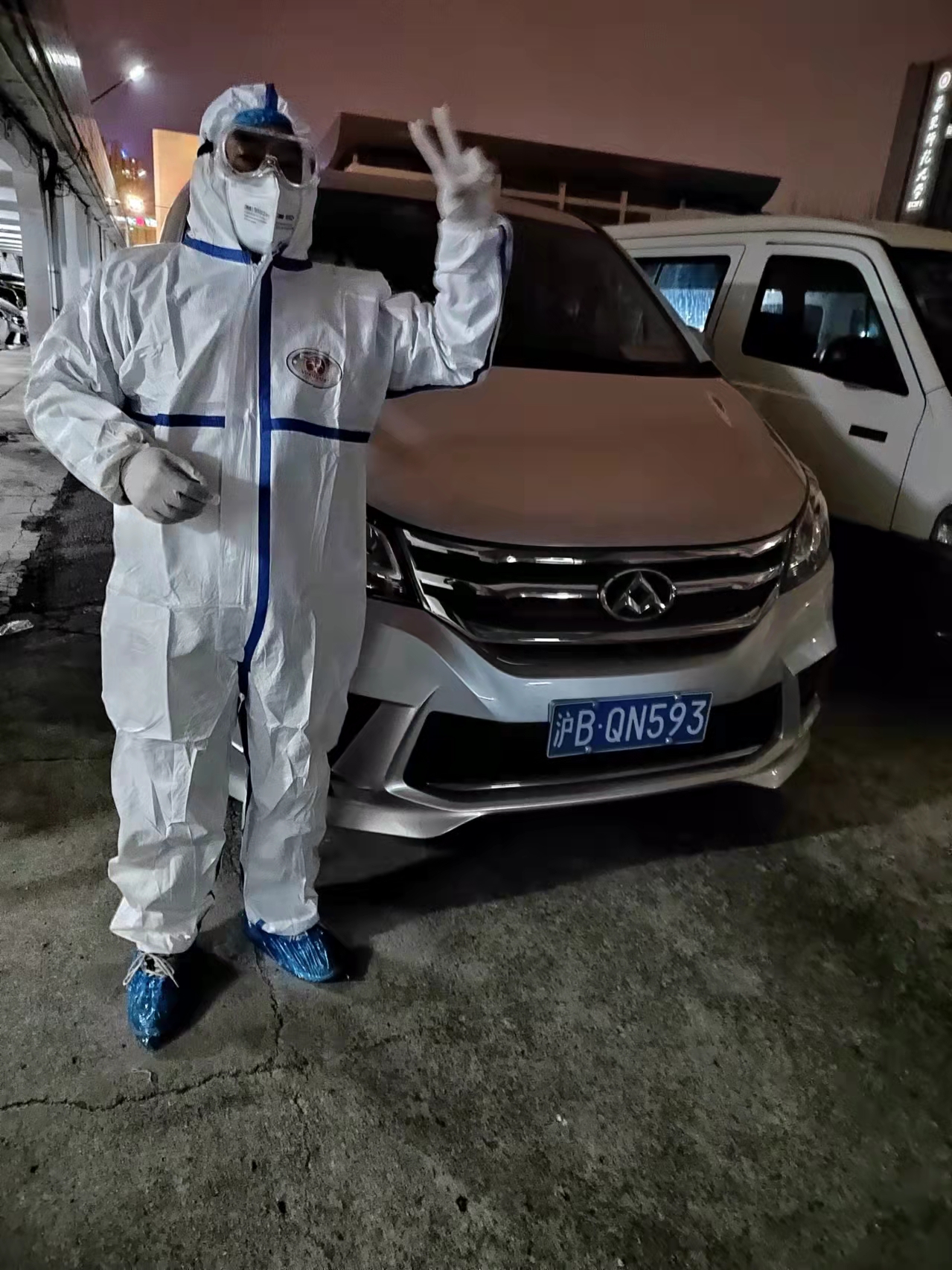 早晨六点去接发热学生,先送普陀区中心医院,再送同济医院,再送华东医院,最后送中山医院成功就诊。十四号中午气温有三十度,穿着防护服极其闷热,等候一小时才接到学生,就医结束回来浑身湿透。