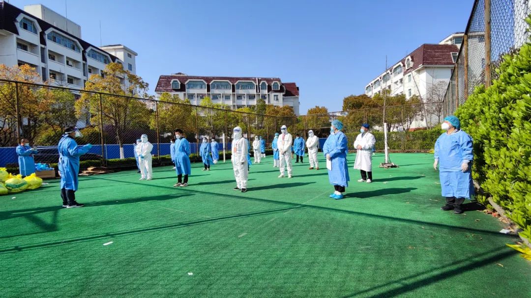3月26日,瑞金医院团队接到采样任务指令,连夜赶赴闵行校区布点踩点,蔡燕华处长带队实地勘测部署;另一路,感染科周惠娟医生坐镇校医院诊断疫情。