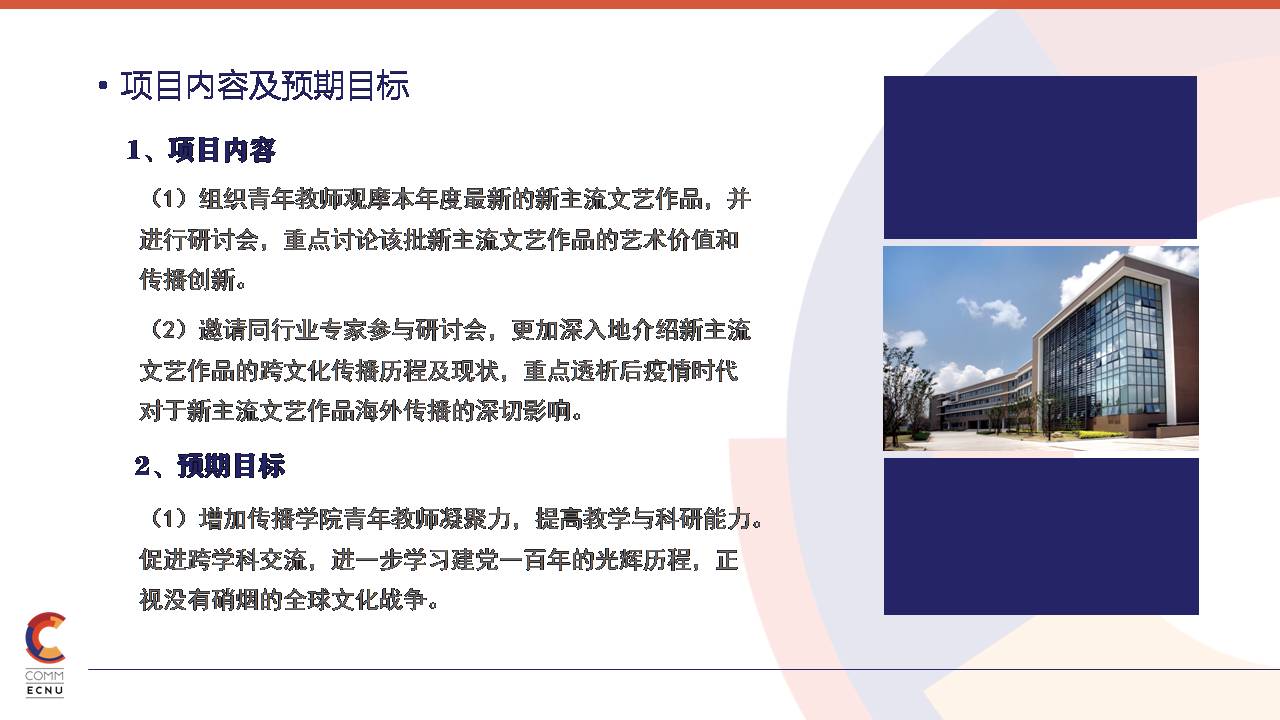 传播学院青年教师活动的工作特色为将感性的文艺作品观摩与理性的学术研讨紧密结合。在充分调研青年教师观摩兴趣和研究方向的基础上,立足于“大传播”平台,精心选择不同类型、不同题材、不同特点的观摩文本和参观对象,通过观摩和研讨新主流文艺作品,透析其海外传播的现状、策略和趋势。紧扣时代脉搏,加深跨学科交流,提升学院教师凝聚力。