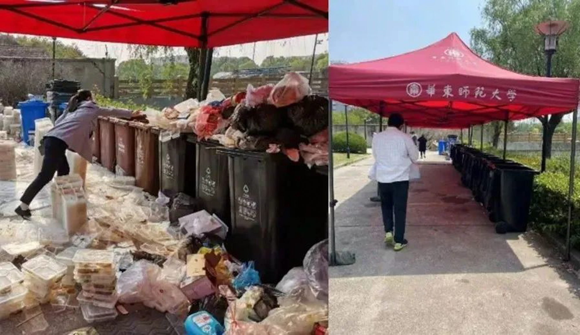 在我进入片区的次日清晨七点半,看到“小分队”群里有几条信息:“垃圾又成堆了,有空的战友和我一起去整理一下垃圾。”“好的,我过来。”“带好面罩。”便赶去垃圾堆放点。只见垃圾桶边上饭盒如小山,杜震宇、金丽君老师蹲在地上整理,以清理出一条道,方便边上排队扔饭盒的同学走到垃圾桶那里。于是便过去帮忙。事后十点,海燕书记、震宇教授召集大家线上开了“垃圾短会”,协调后勤等相关部门,克服清卫人员人手紧缺的困难,很快形成优化方案,发布“关于垃圾分类处置的通知”。兹事虽小,已感受到战友们民主会商、多方协调、相互激励的工作路径。(按照新学的一个词,也可称为“手势”吧。)