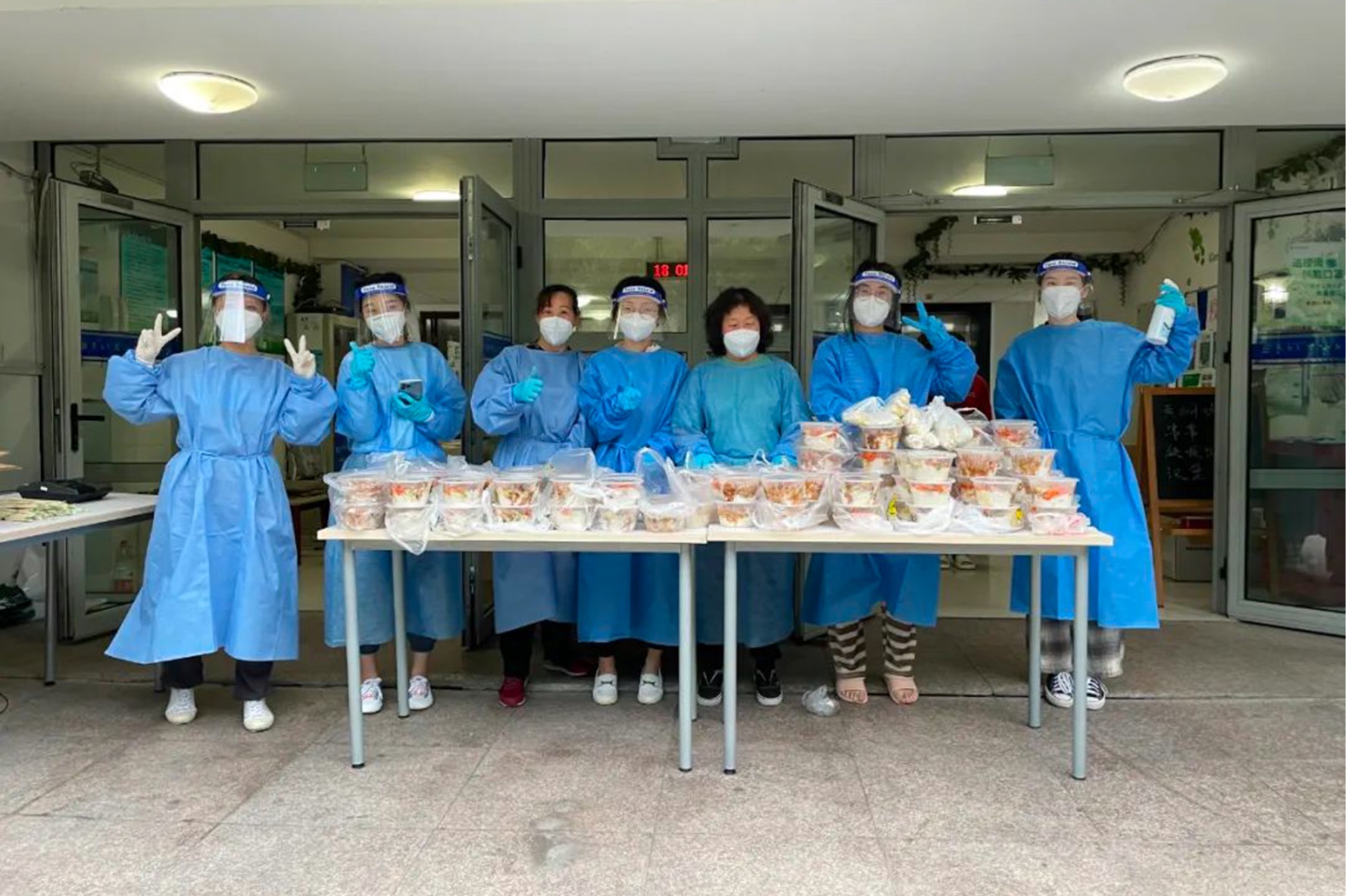无论是大袋的连装盒饭,还是成箱组装的水果,女生志愿团看似瘦弱的身躯却迸发出了强大的力量,组成了一道连接学校、区块与封控学生之间的靓丽弧线。