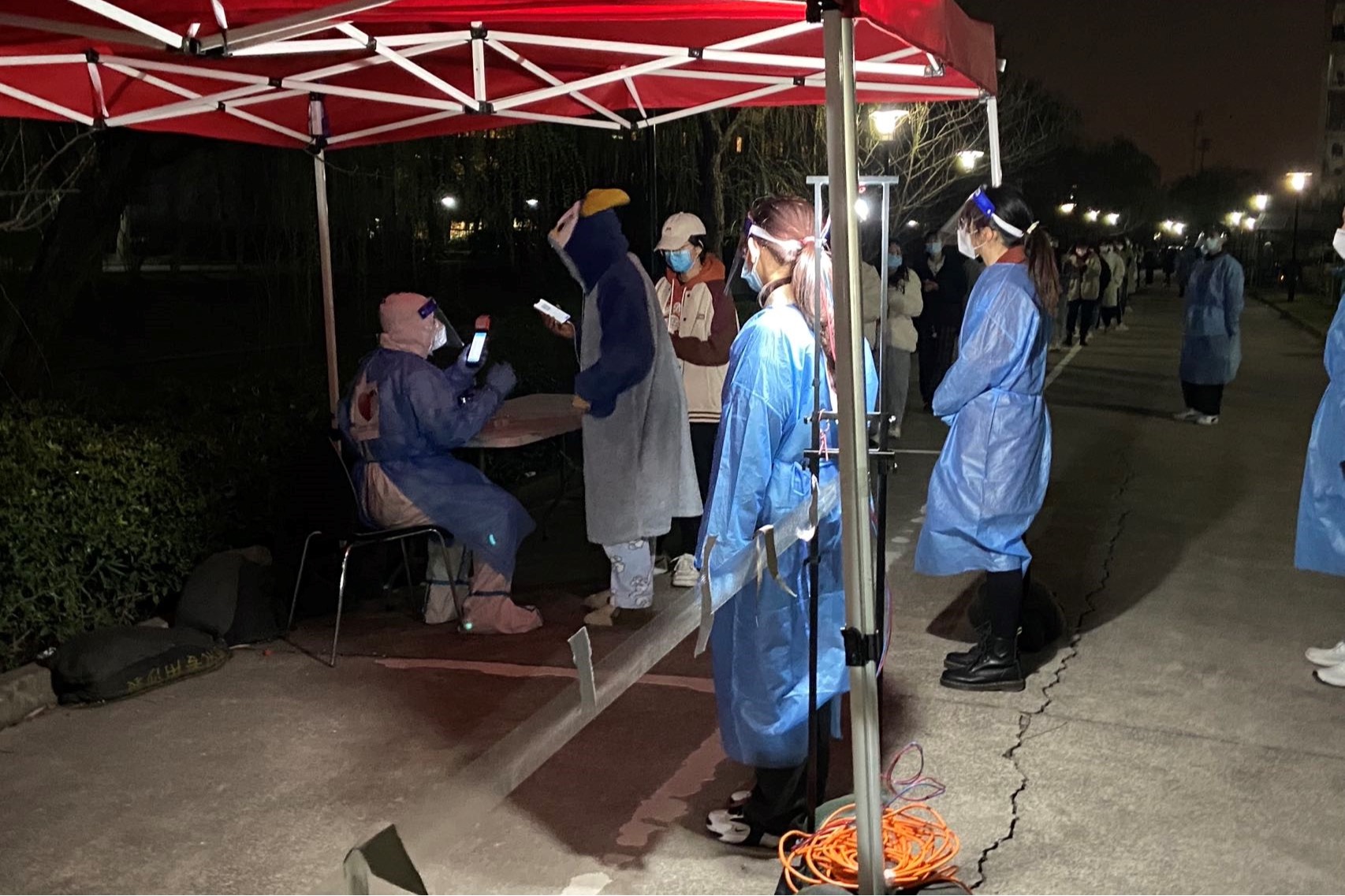 3月23日晚,核酸检测现场