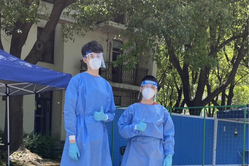 和负责老师杜源恺交流时,我突然意识到核酸检测这支队伍从封控管理第一天起,已经经历了50多天的风雨,一路陪伴研究生公寓走到了现在。