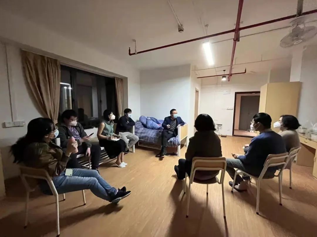 凌晨,管控中的白玉路宿舍片区,驻守的老师们召开例会