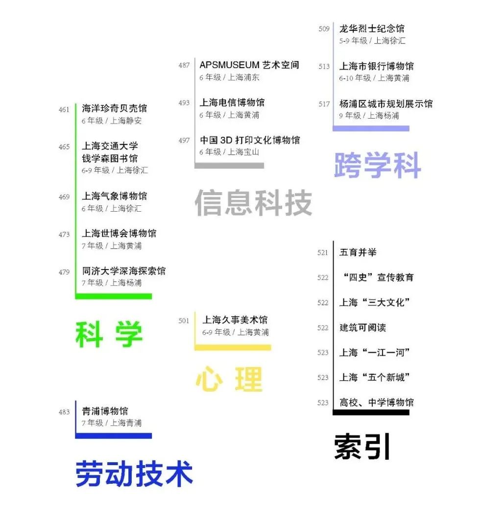 从学科教育出发,鼓励师生从课本走向博物馆,拓宽基础型课程视野,在确保博物馆教育的趣味性与互动性的同时,探索博物馆教育的创新方式。“百馆百单”还特别设计各专题索引,旨在为拓展型课程、探究型课程提供了解认识国家历史文化和基本国情的社会实践、科学研究和职业体验的场景,也期待为博物馆的亲子教育提供参考。