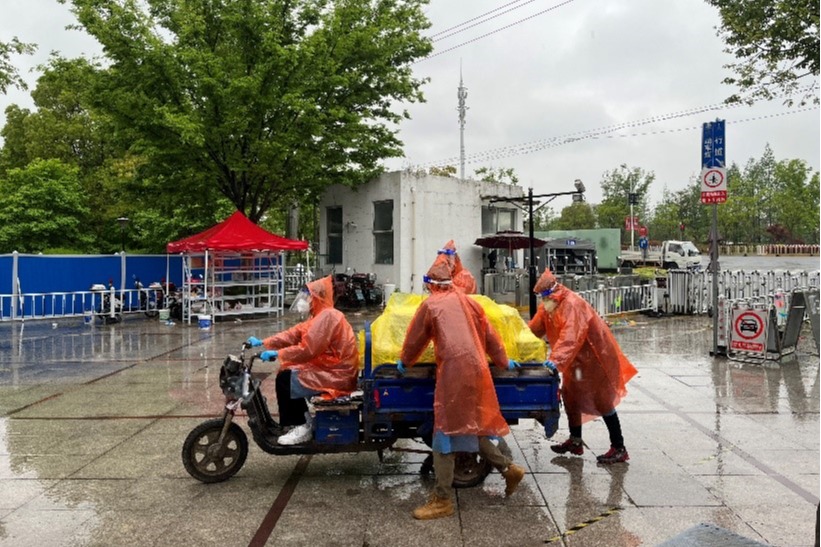 4月1日上午,已经封闭管理了19天核酸全阴的研究生公寓北区首次出现核酸异常,由于涉及食堂工作人员,当天的午晚餐全部从片区外临时紧急调配,工作组的7位老师(黄岚兰、杜震宇、刘金玉、黄天翔、于袁欢、杜源恺和我)承担起了当天为片区内近2700人送餐的工作。